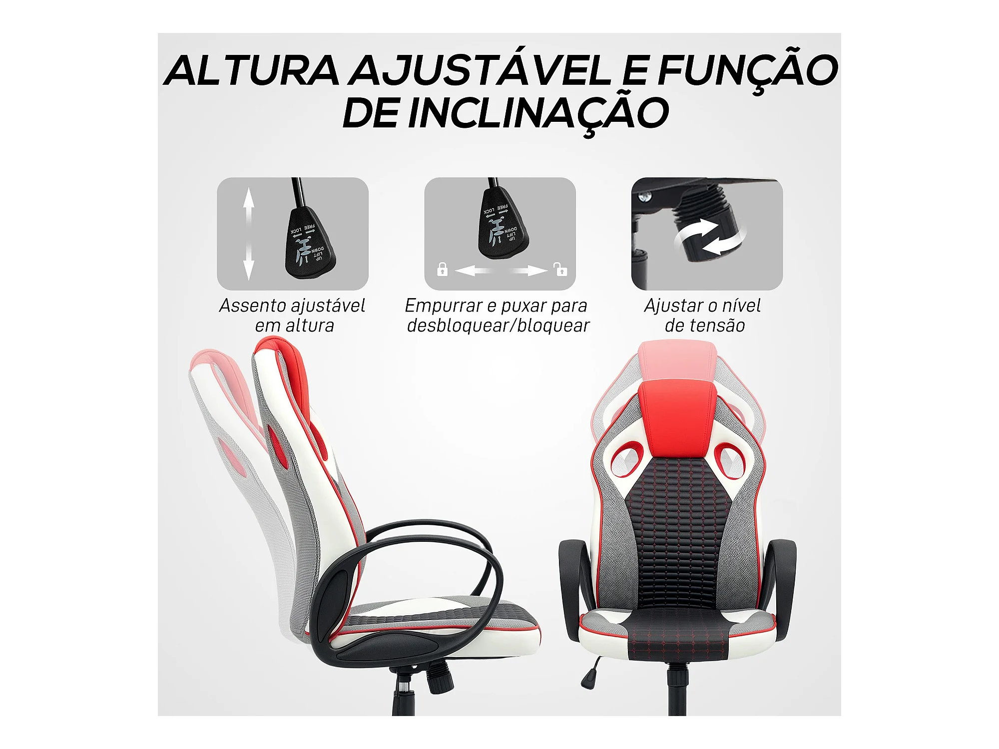 Silla gaming Alonso Homcom altura regulable + inclinable rojo 107,5-116,5x60,5x67 cm