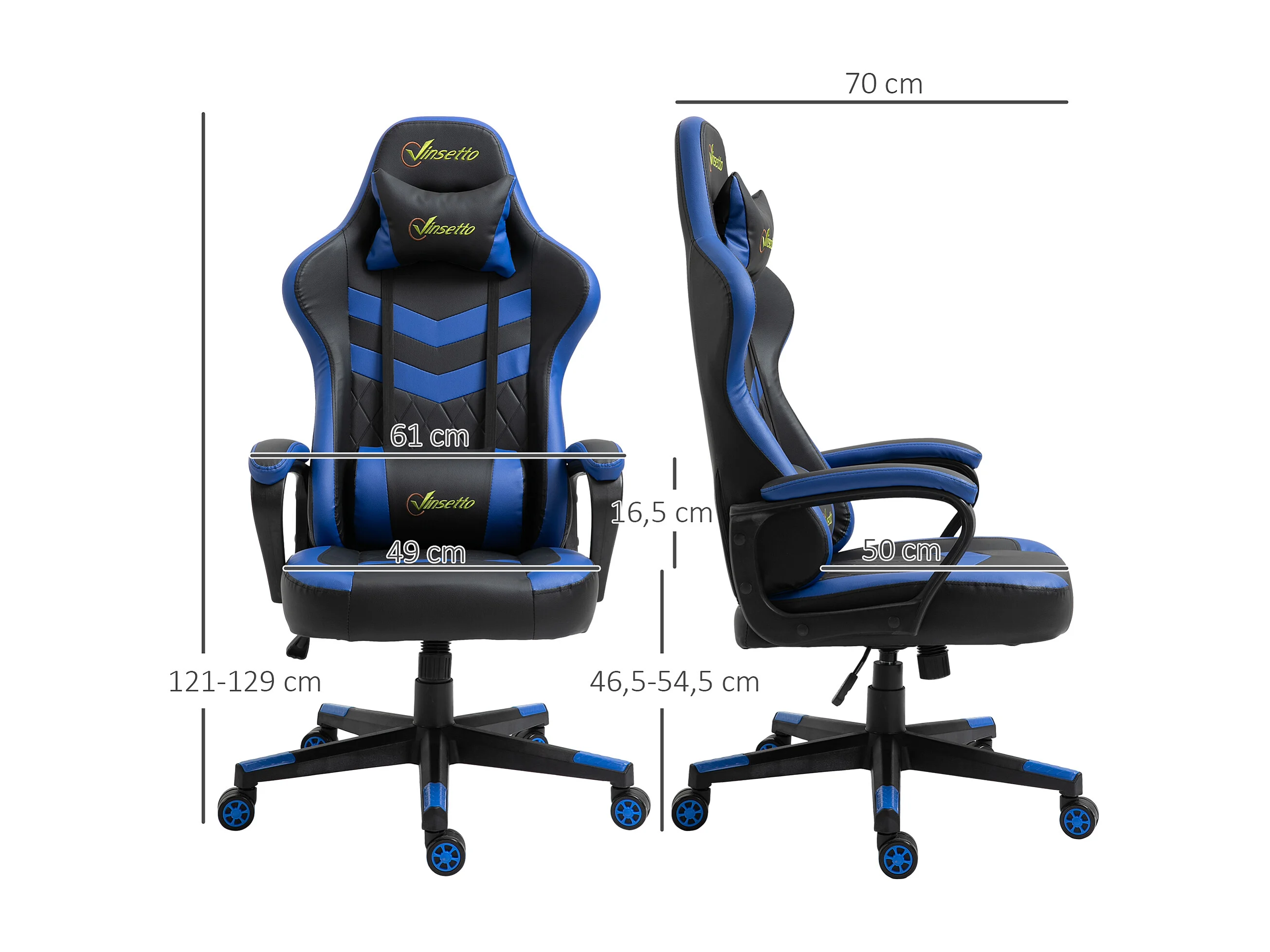 Silla gaming azul y negro 61x70x129 cm Vinsetto