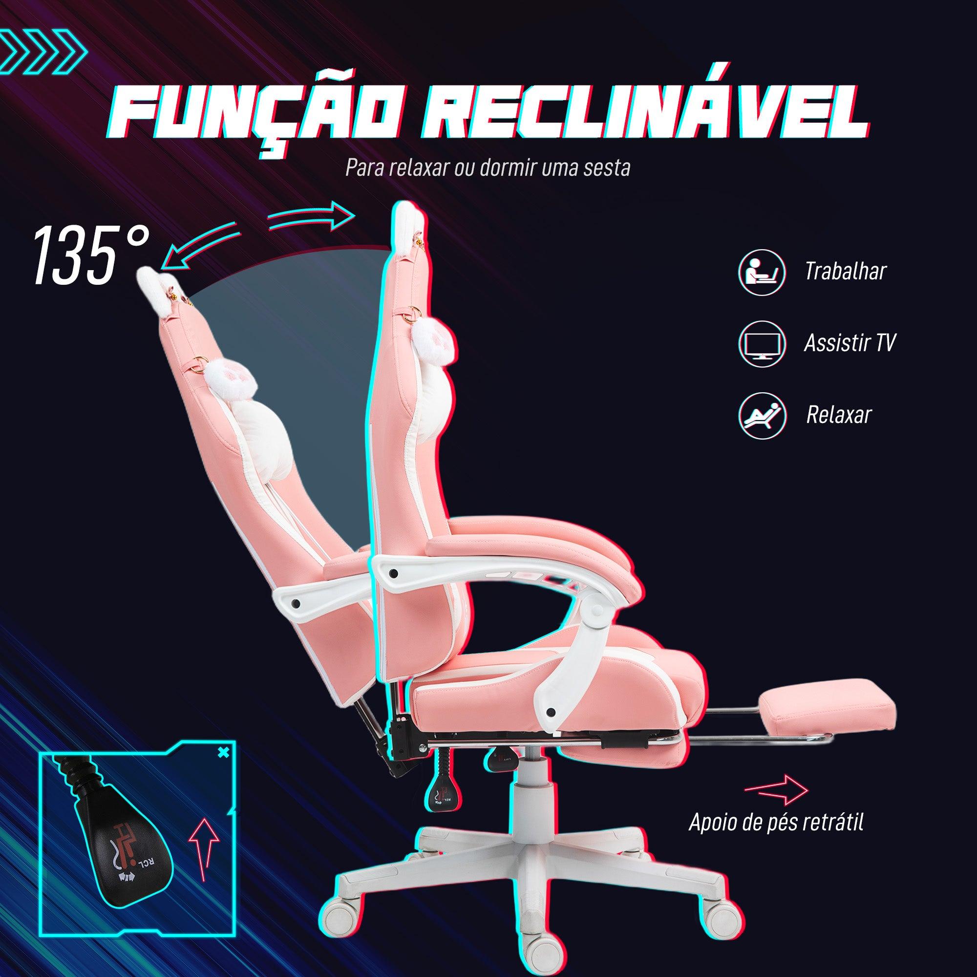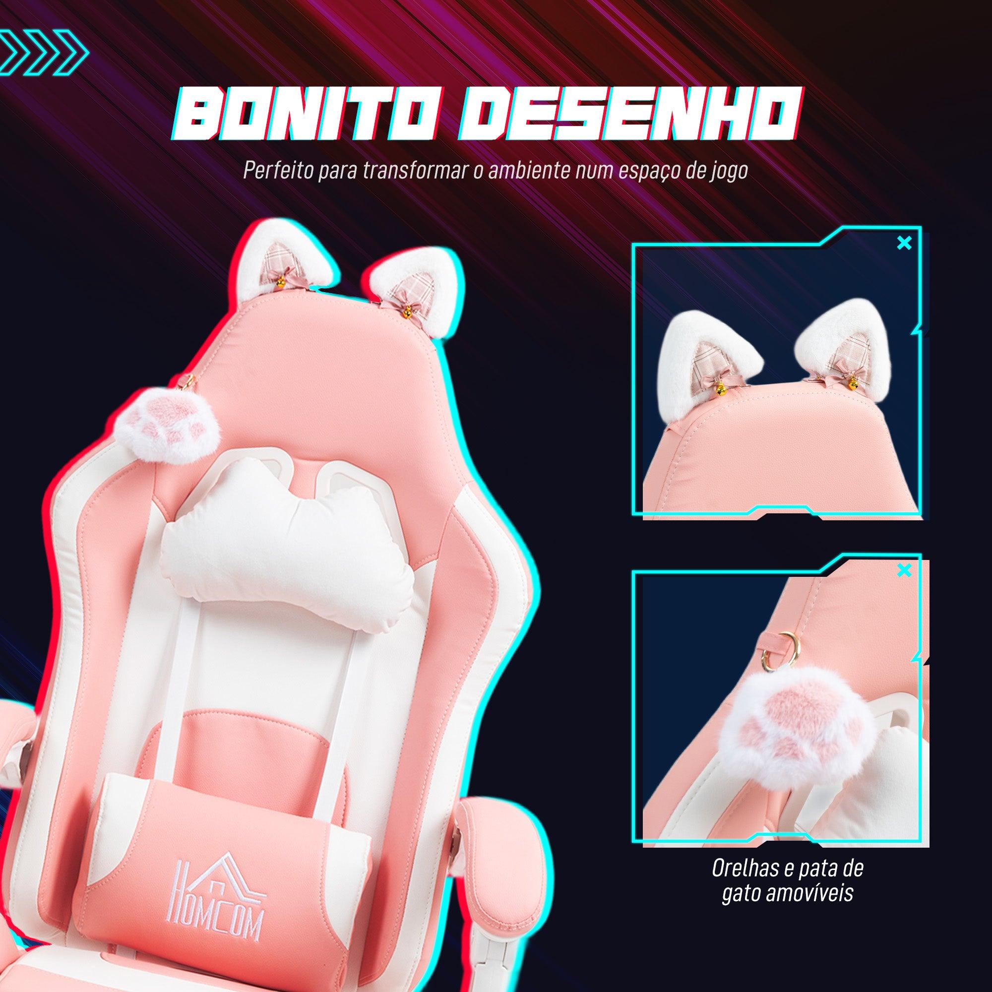 Silla gaming Cat Homcom 2 cojines + reposapiés rosa 116-124x65x62 cm