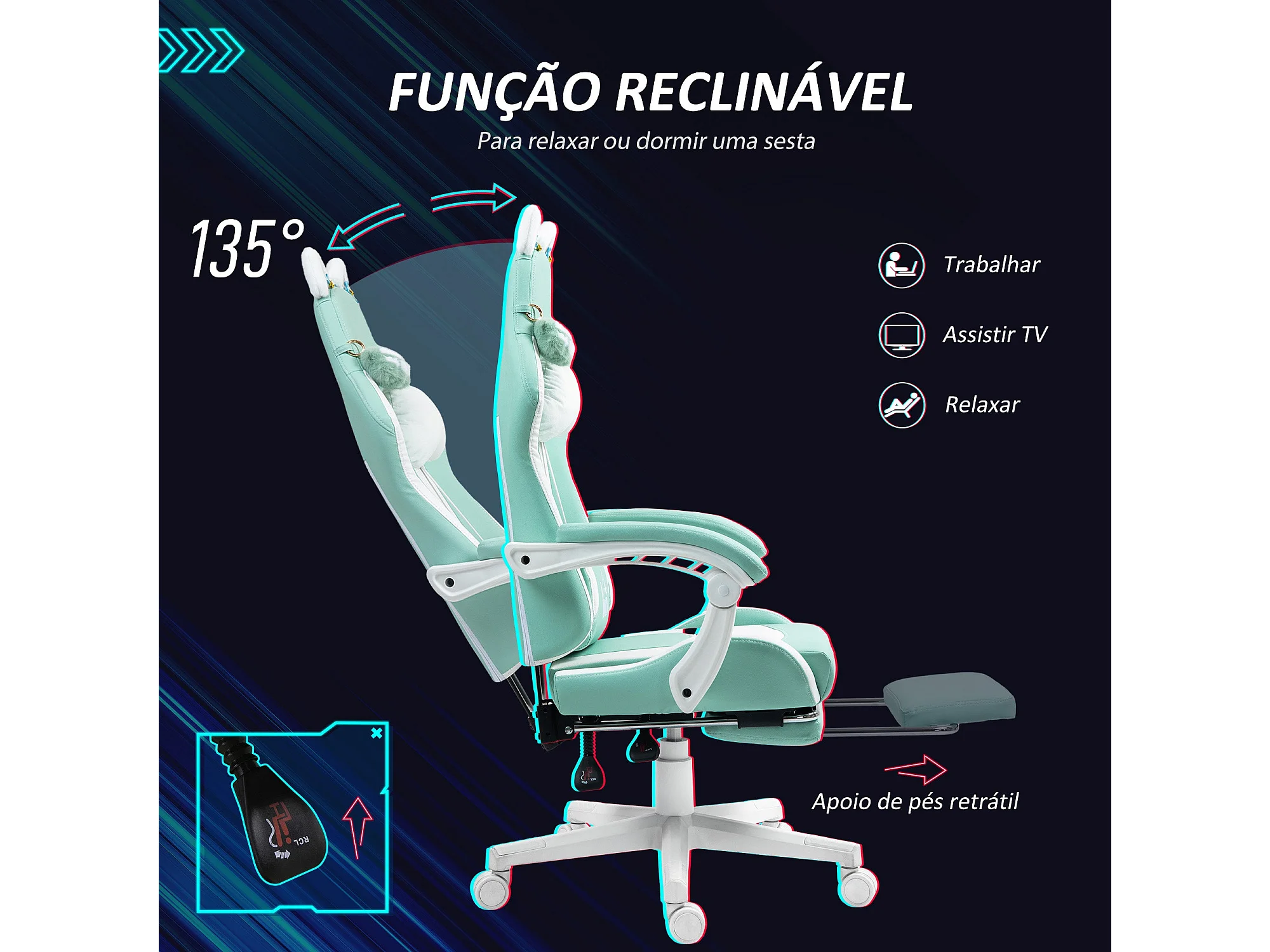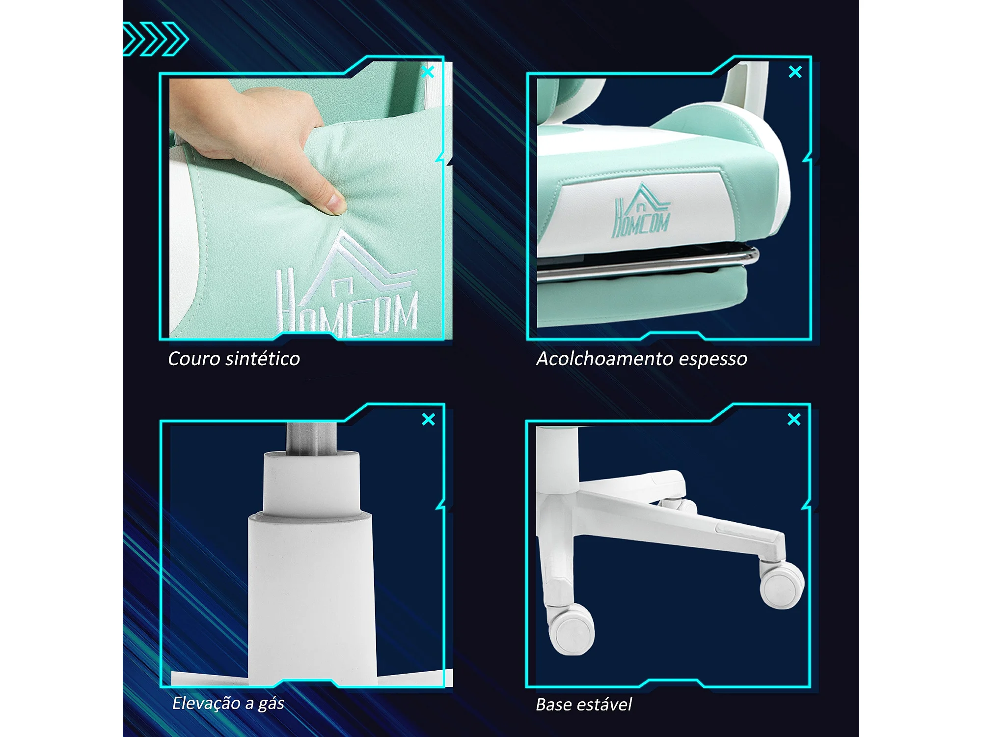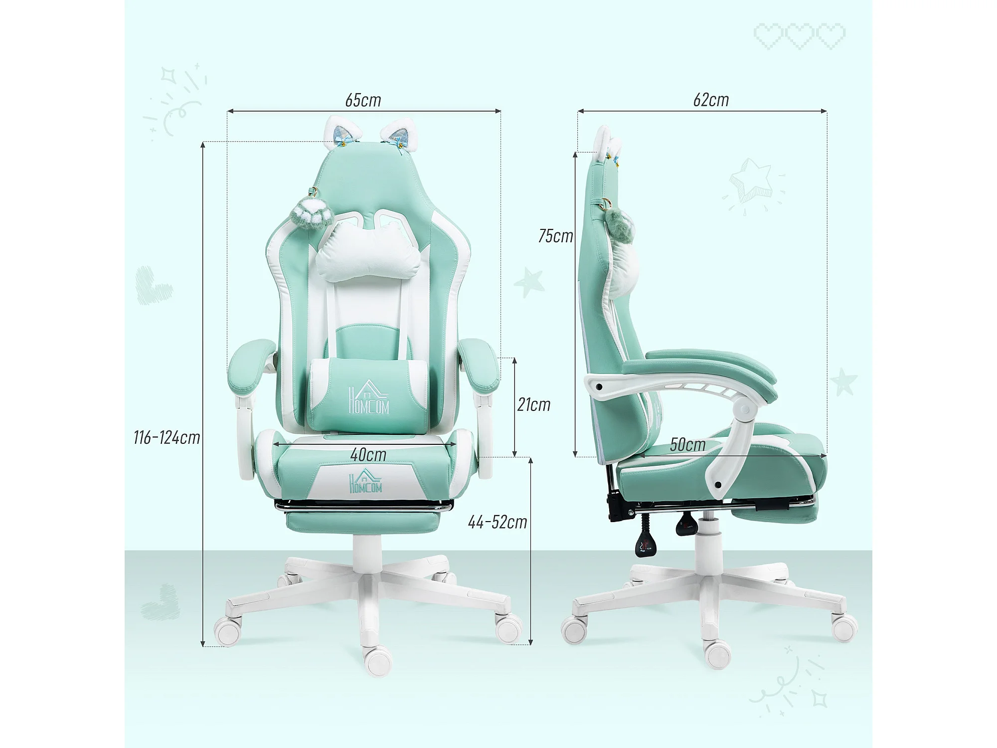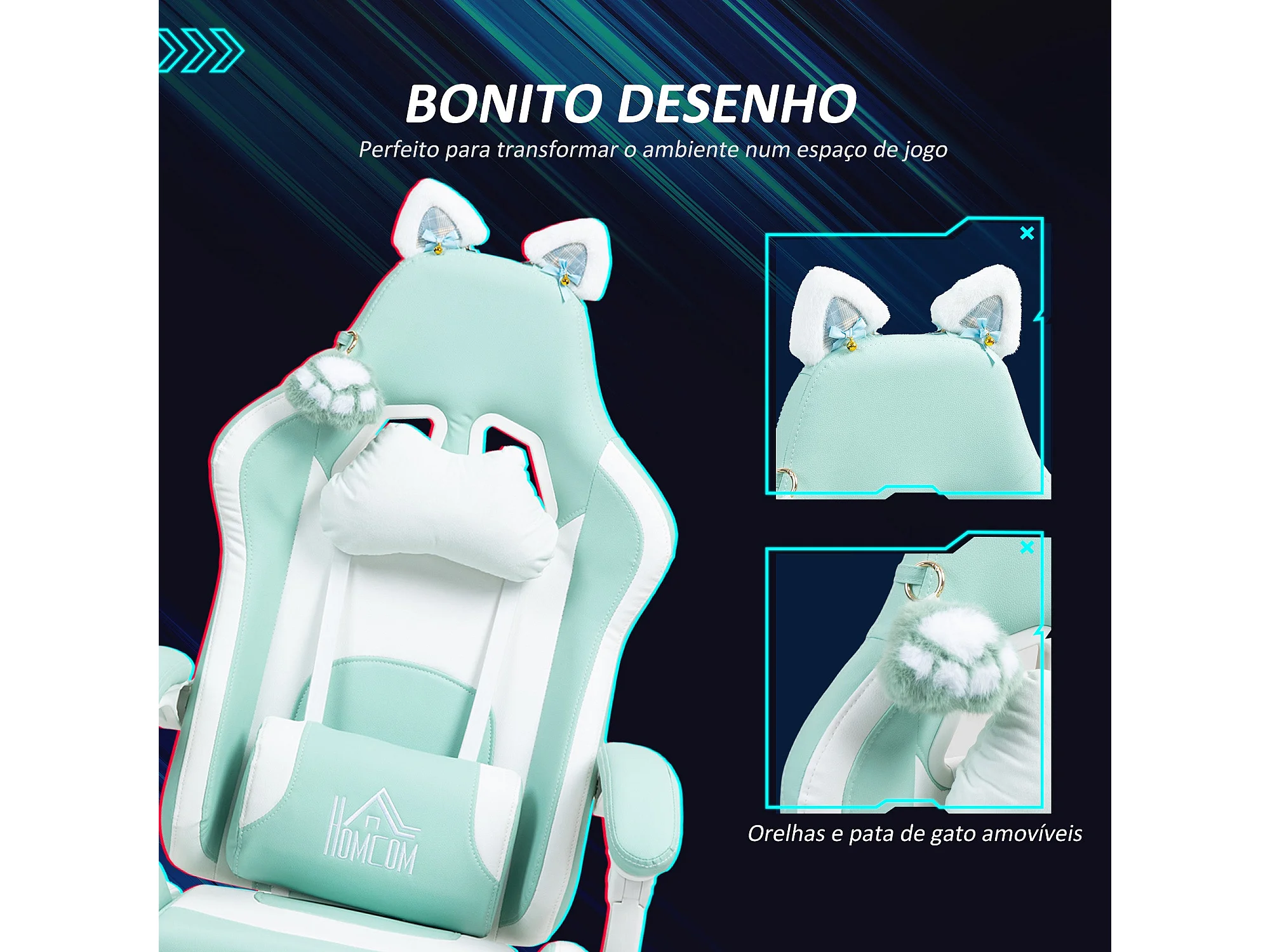 Silla gaming Cat Homcom 2 cojines + reposapiés turquesa 116-124x65x62 cm