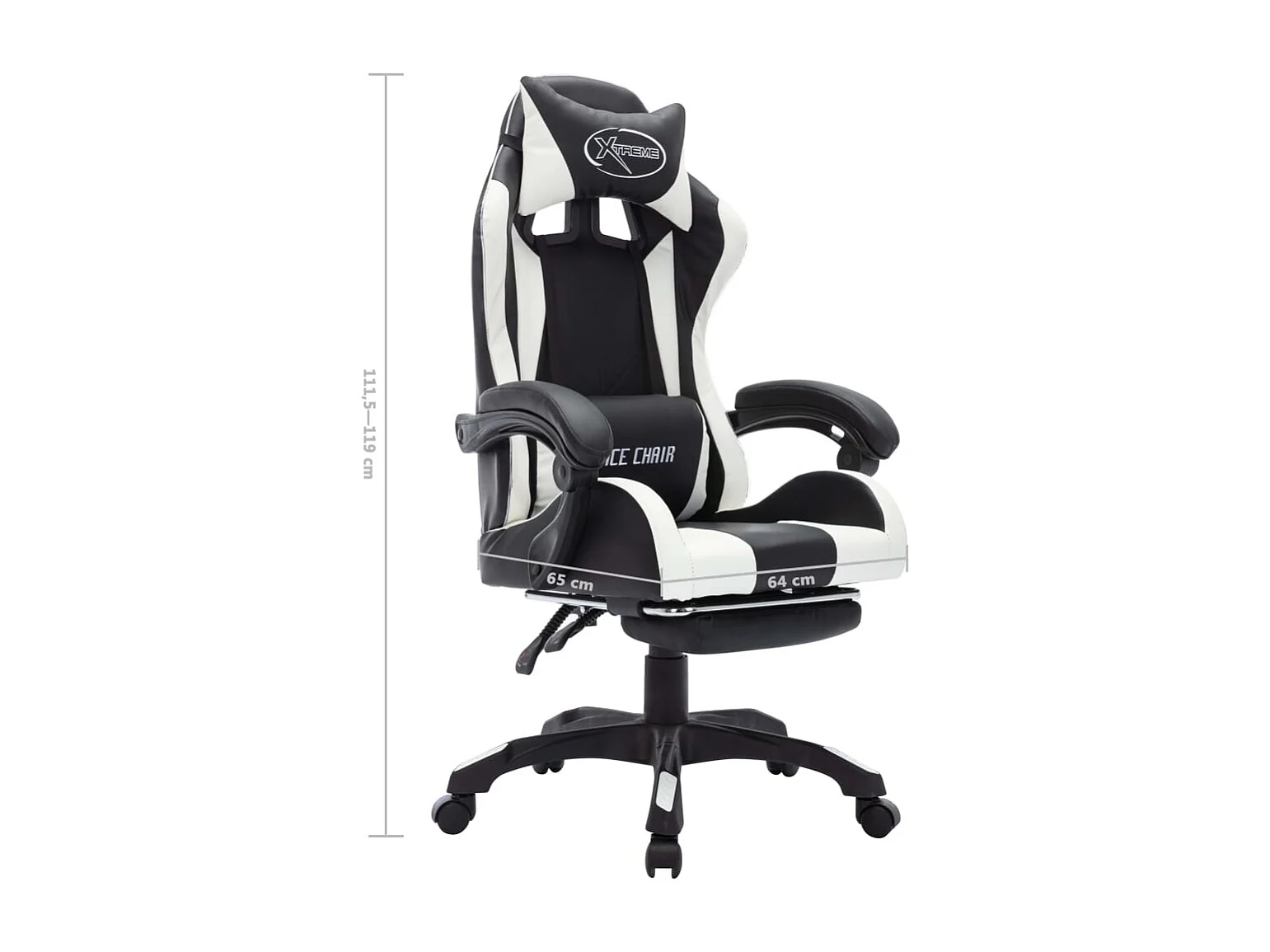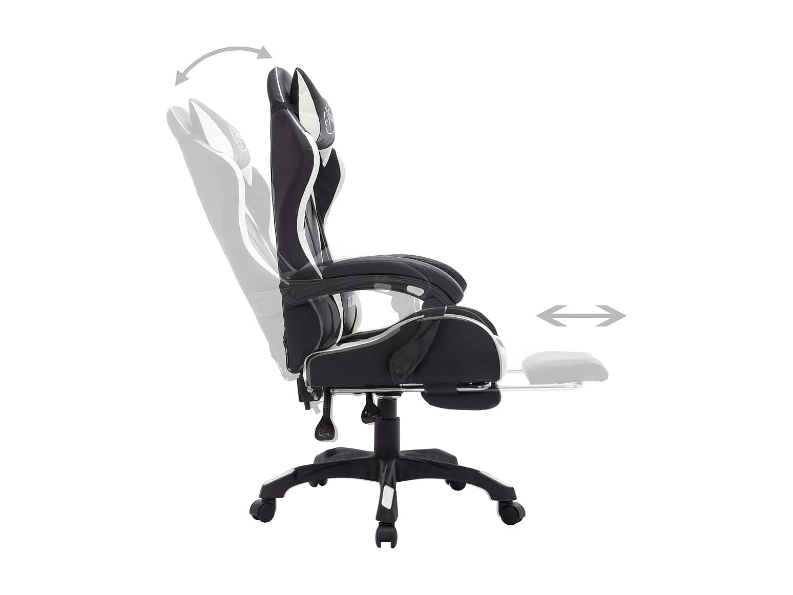 Silla gaming con reposapiés cuero sintético blanco y negro ES960261