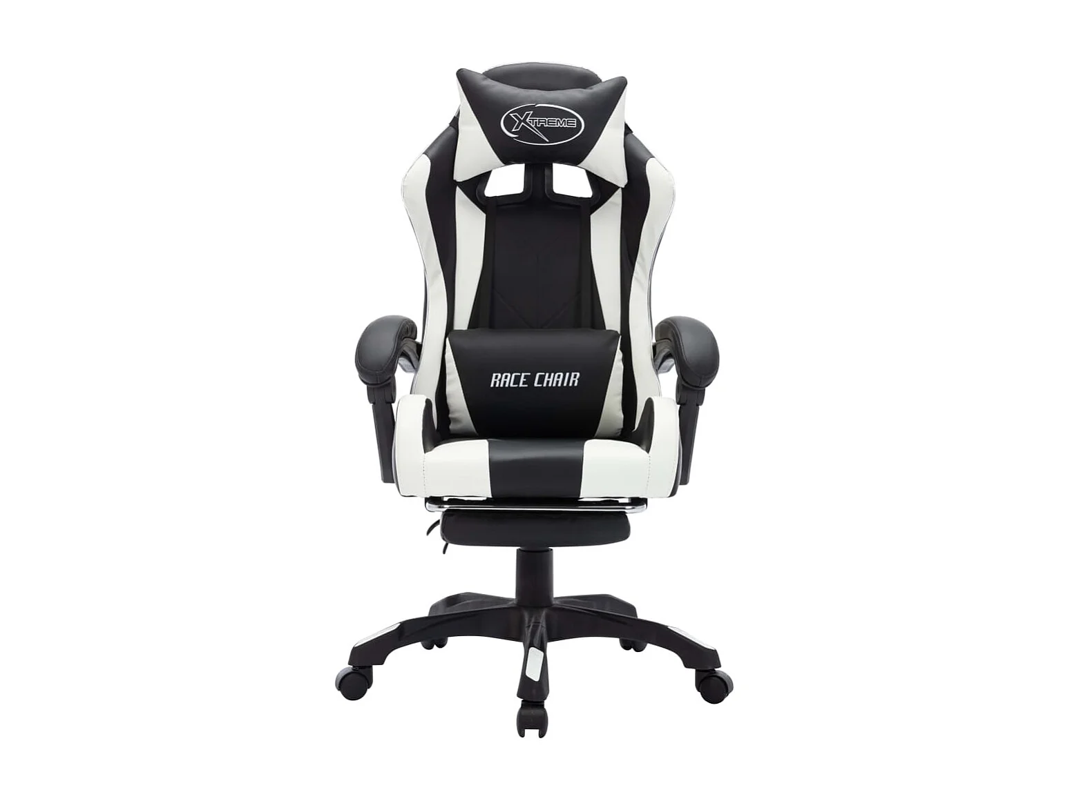 Silla gaming con luces LED RGB cuero sintético blanco y negro