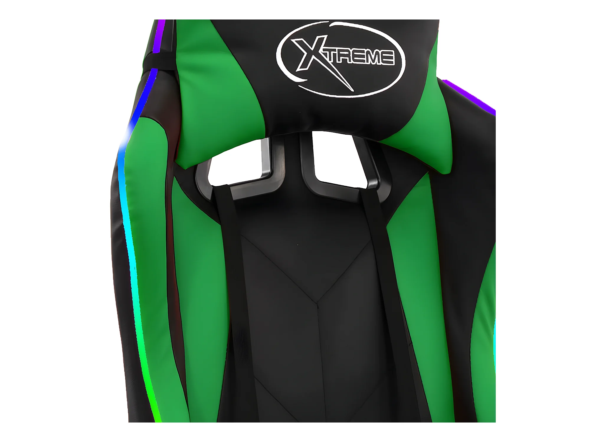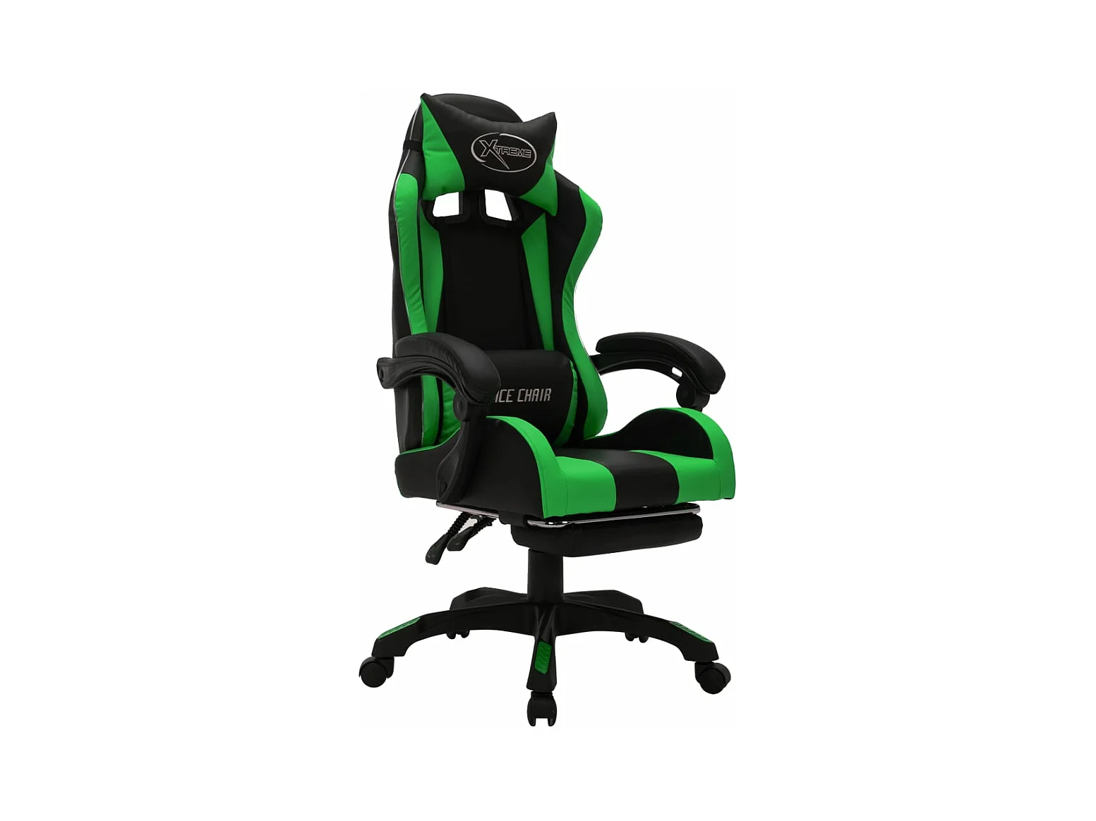 Silla gaming con luces LED RGB cuero sintético verde y negro