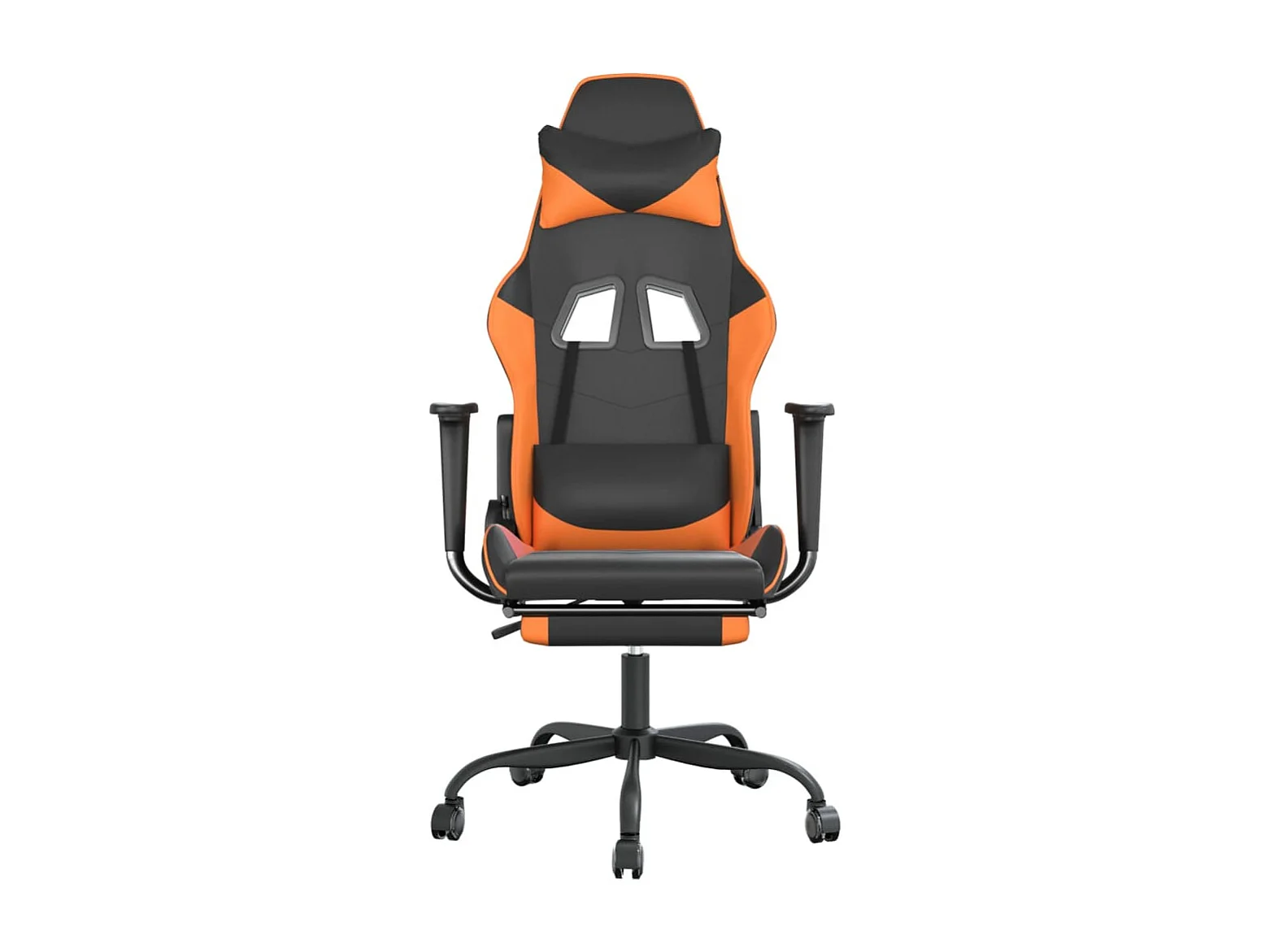 Silla gaming de masaje y reposapiés cuero sintético negro