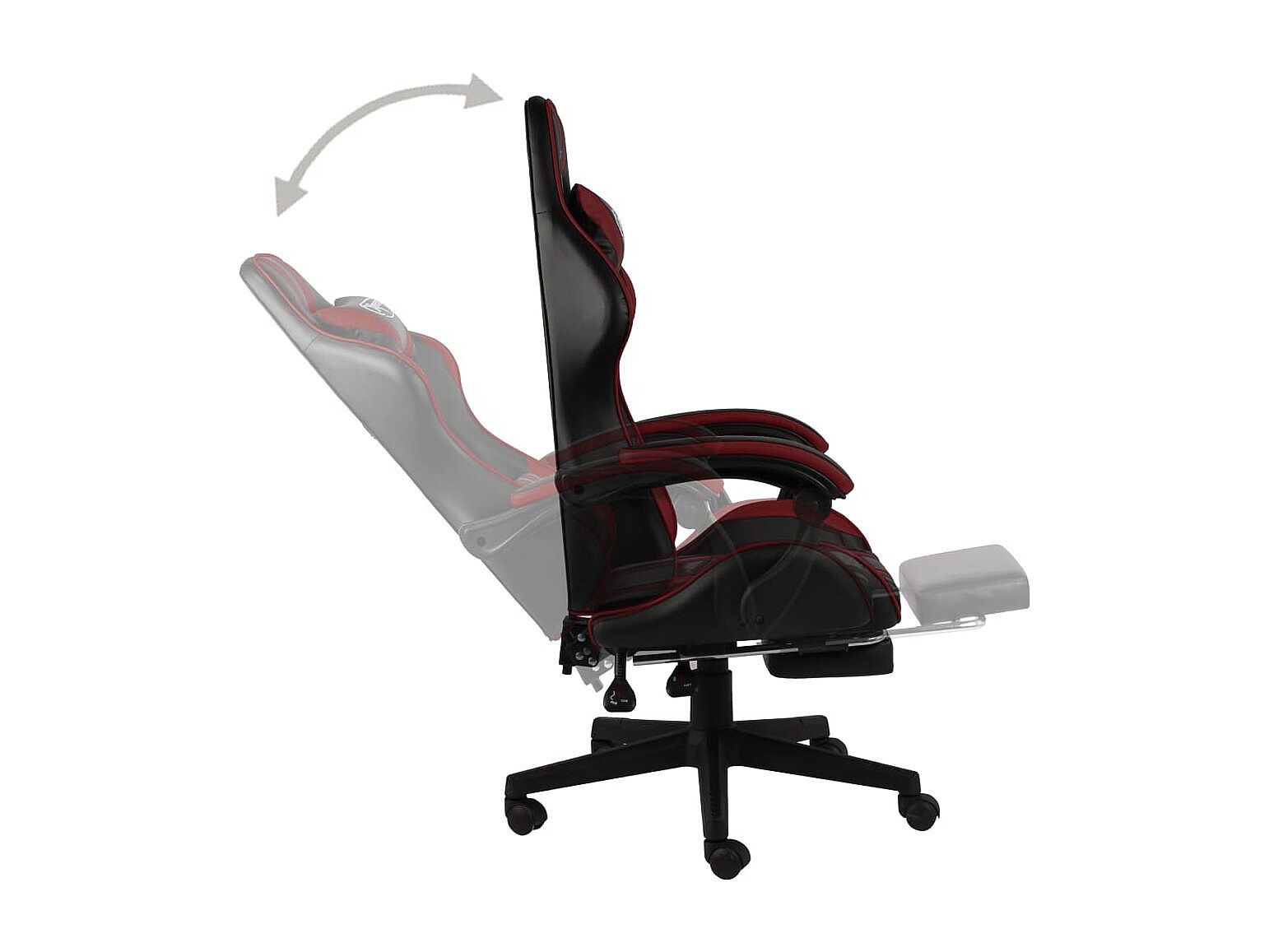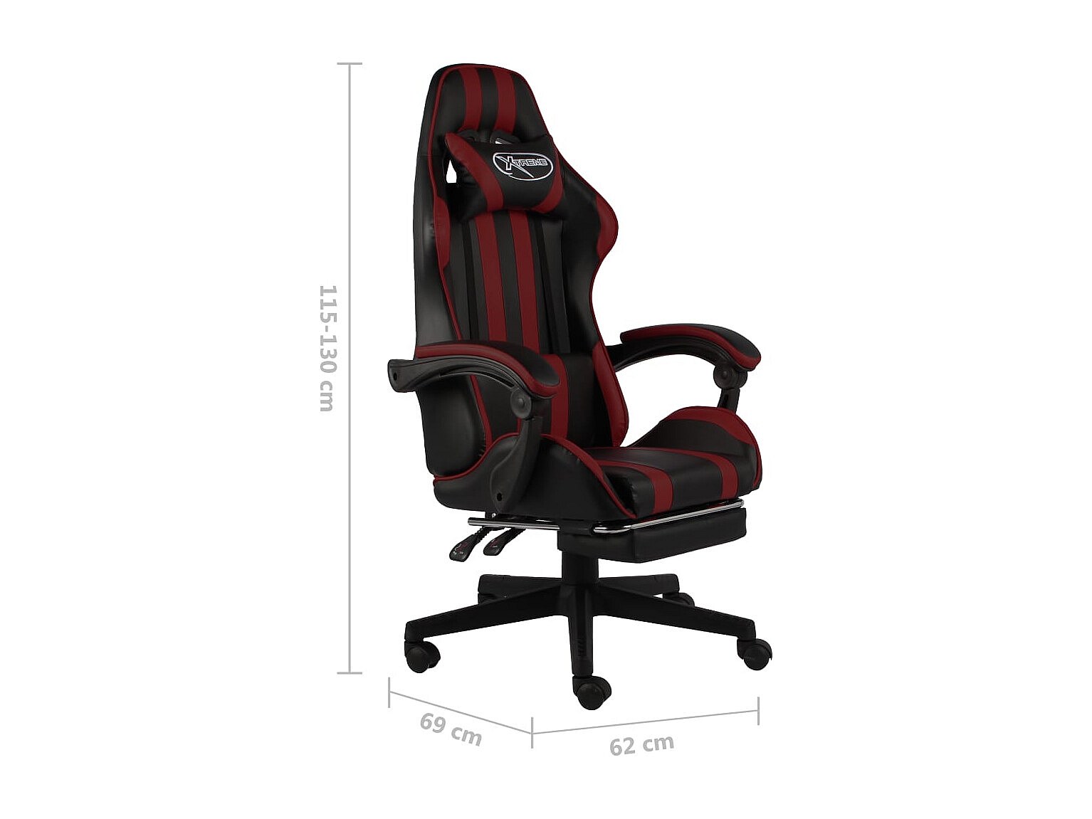 Silla gaming con reposapiés cuero sintético negro y rojo tinto