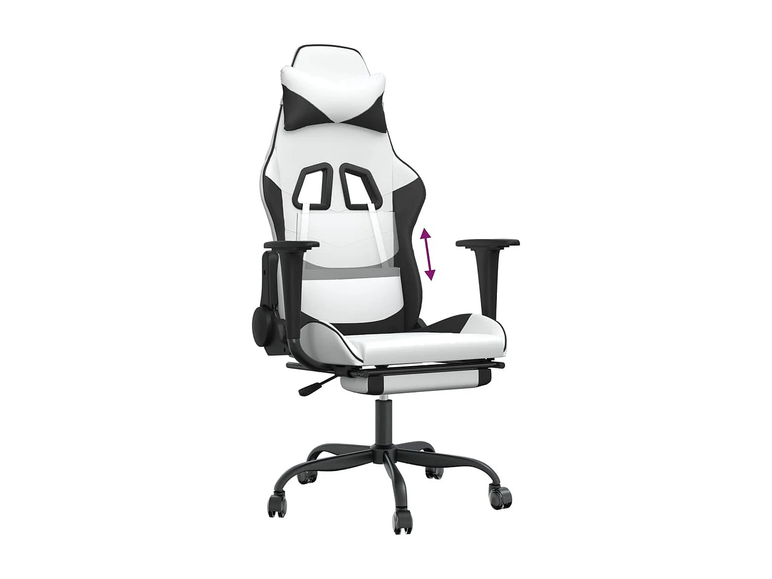 Silla gaming con reposapiés Polipiel blanca y negra
