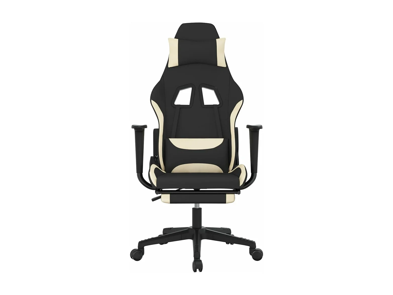 Silla Gaming con Reposapiés Tela Negra y Crema