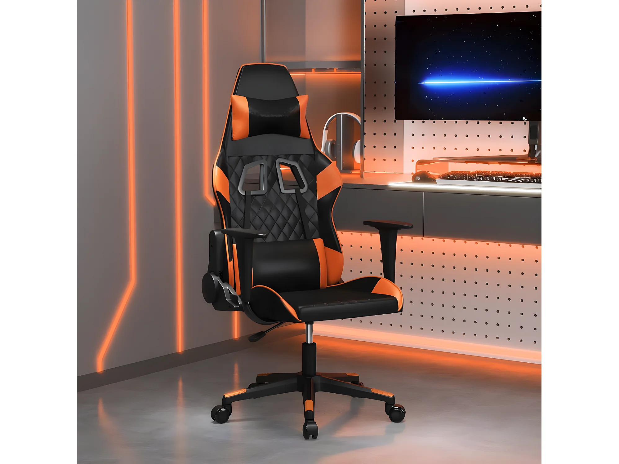 Silla gaming de masaje cuero sintético negro y naranja ES39689