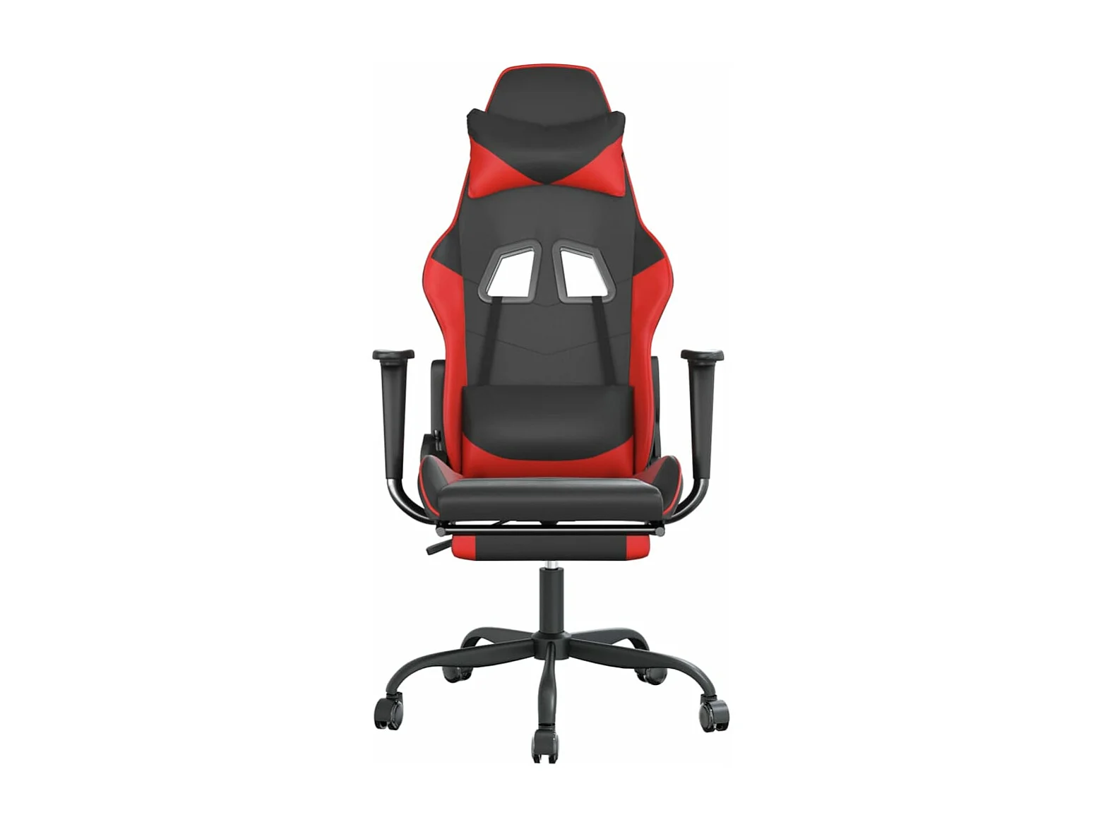Silla gaming de masaje y reposapiés cuero sintético negro rojo