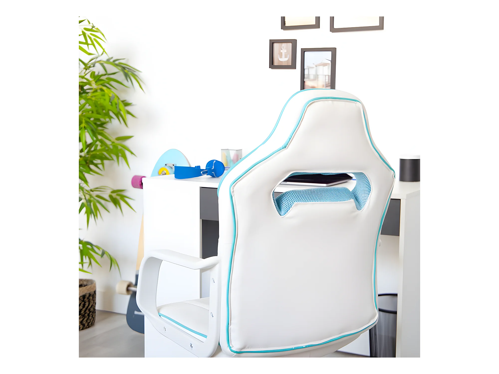 Silla gaming con reposapiés cuero sintético blanco y negro