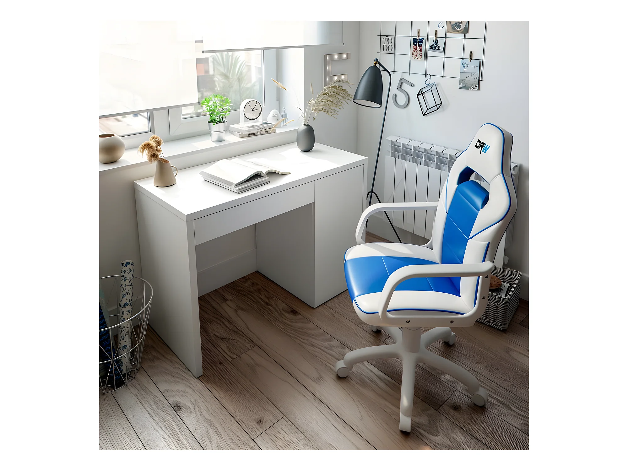 Silla gaming con reposapiés cuero sintético blanco y negro