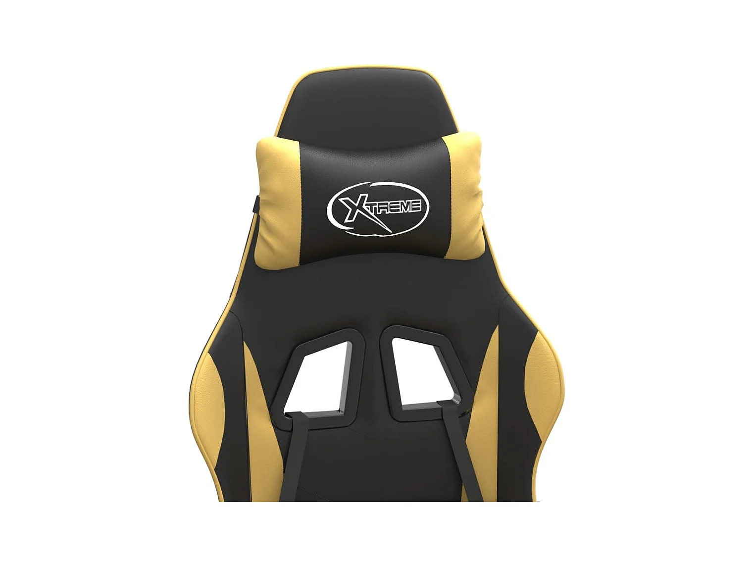 Silla gaming masaje y reposapiés cuero sintético negro dorado ES26282