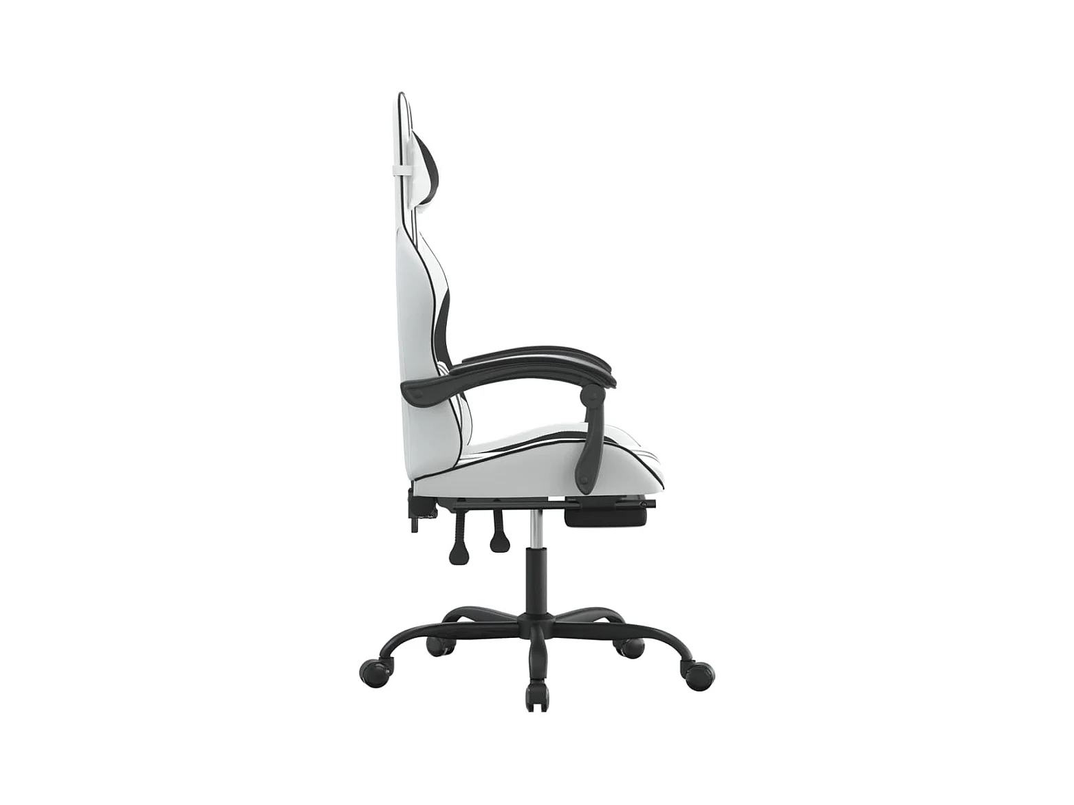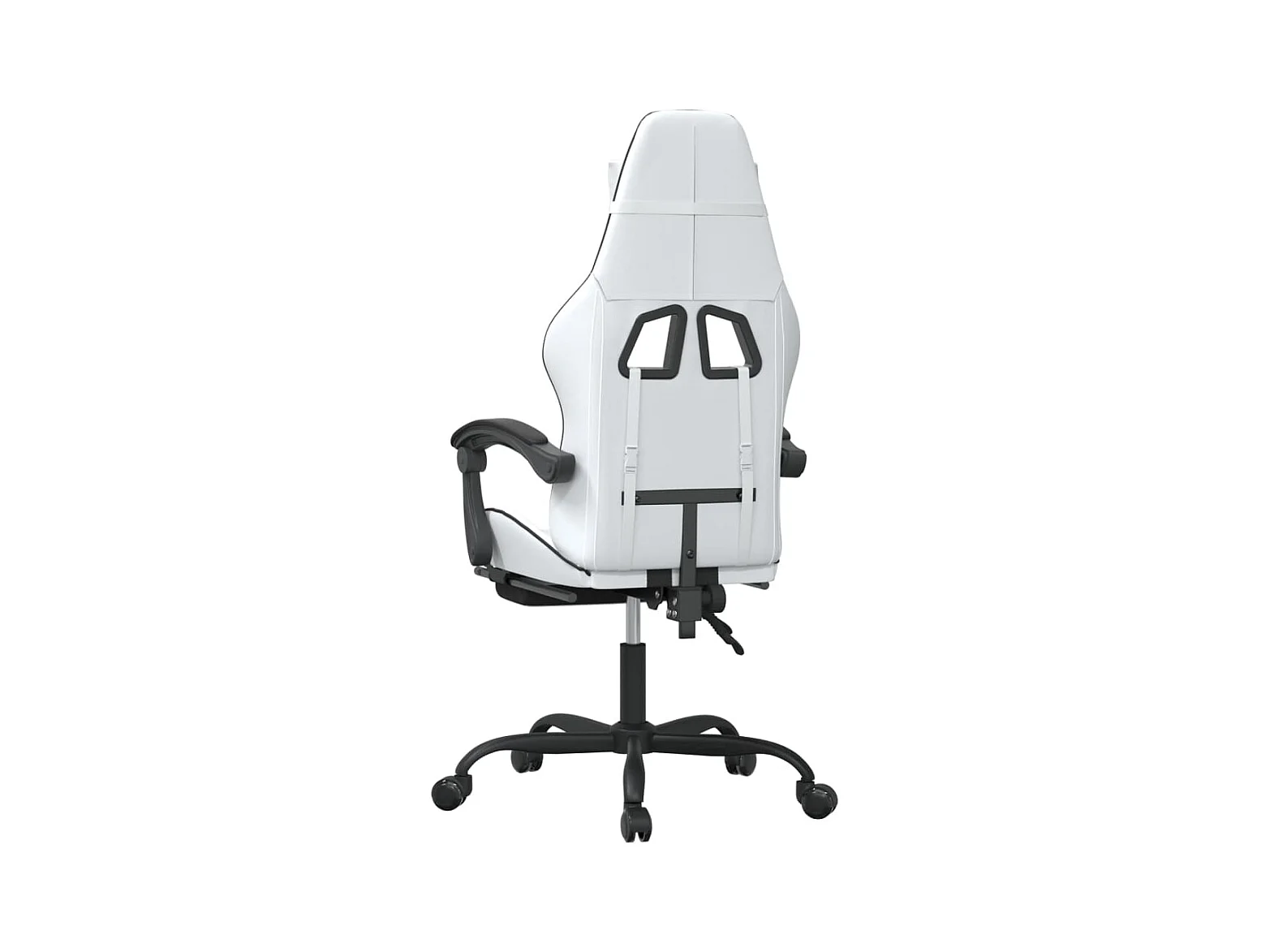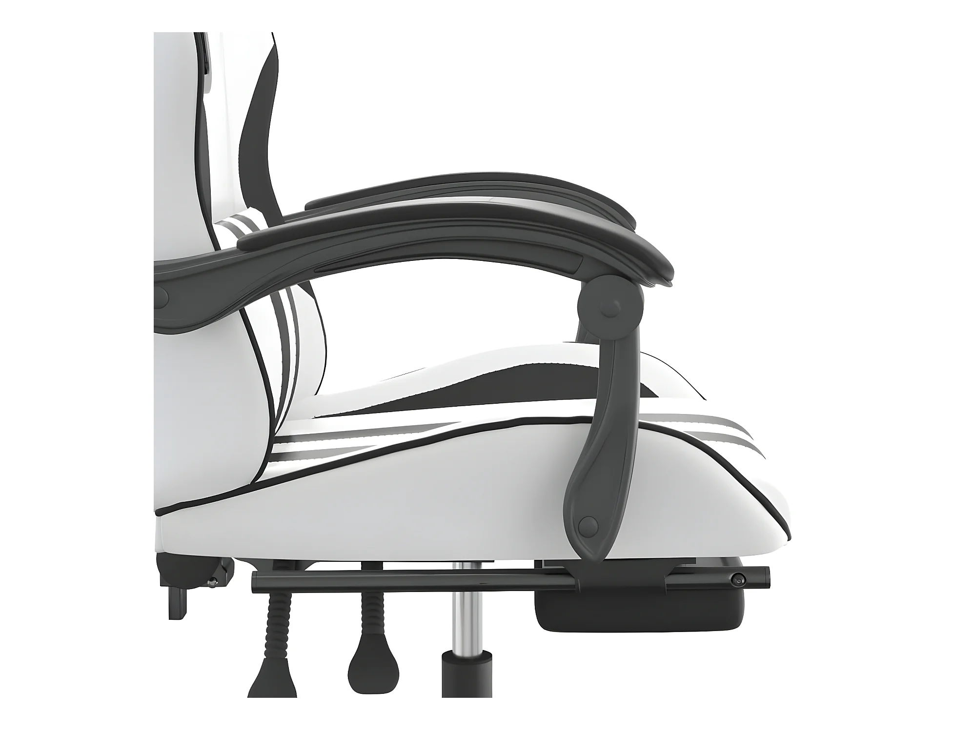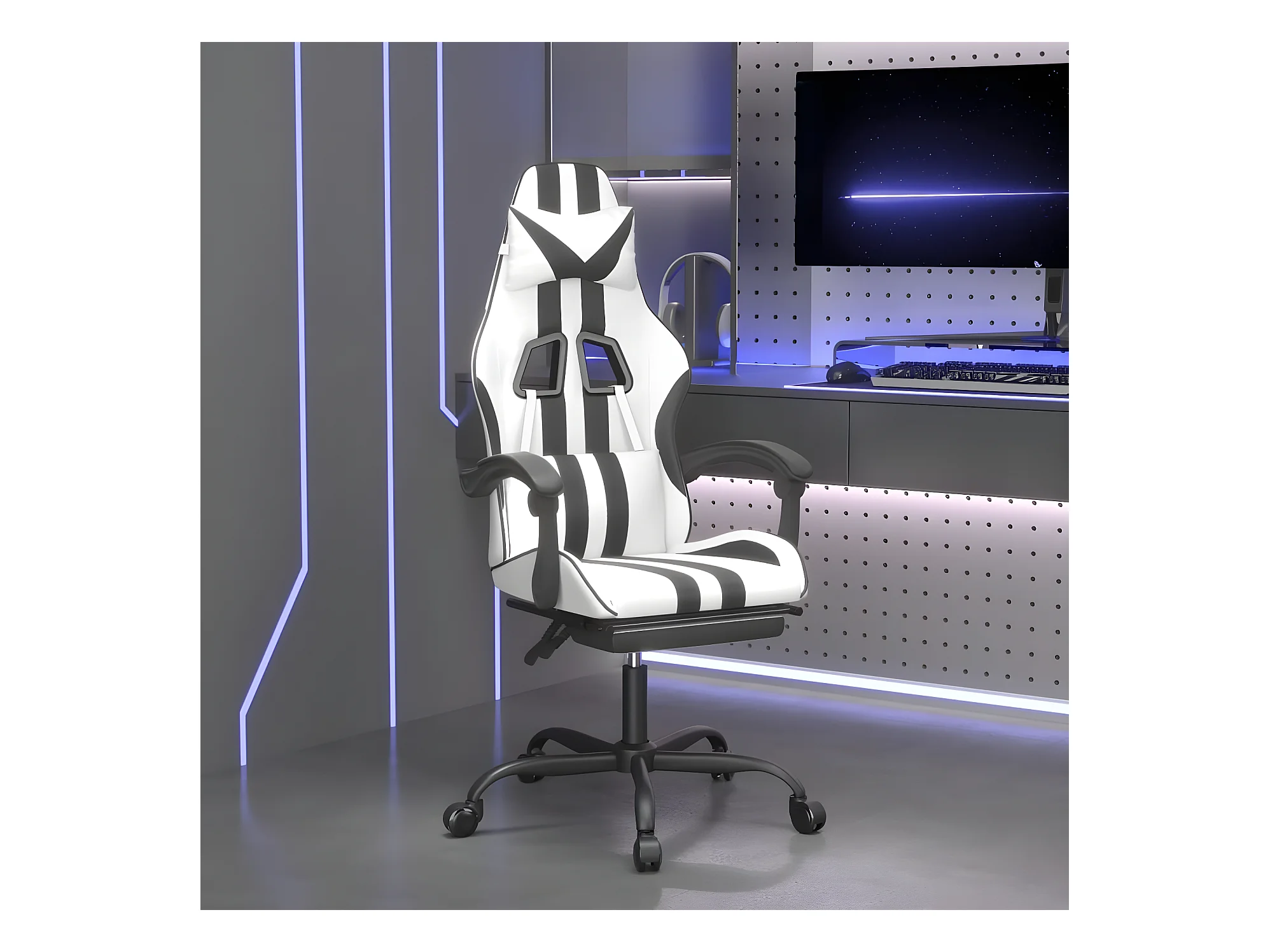 Silla gaming giratoria reposapiés cuero sintético blanco negro