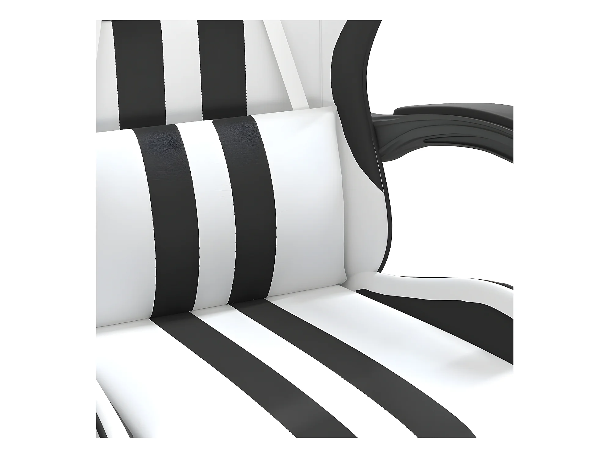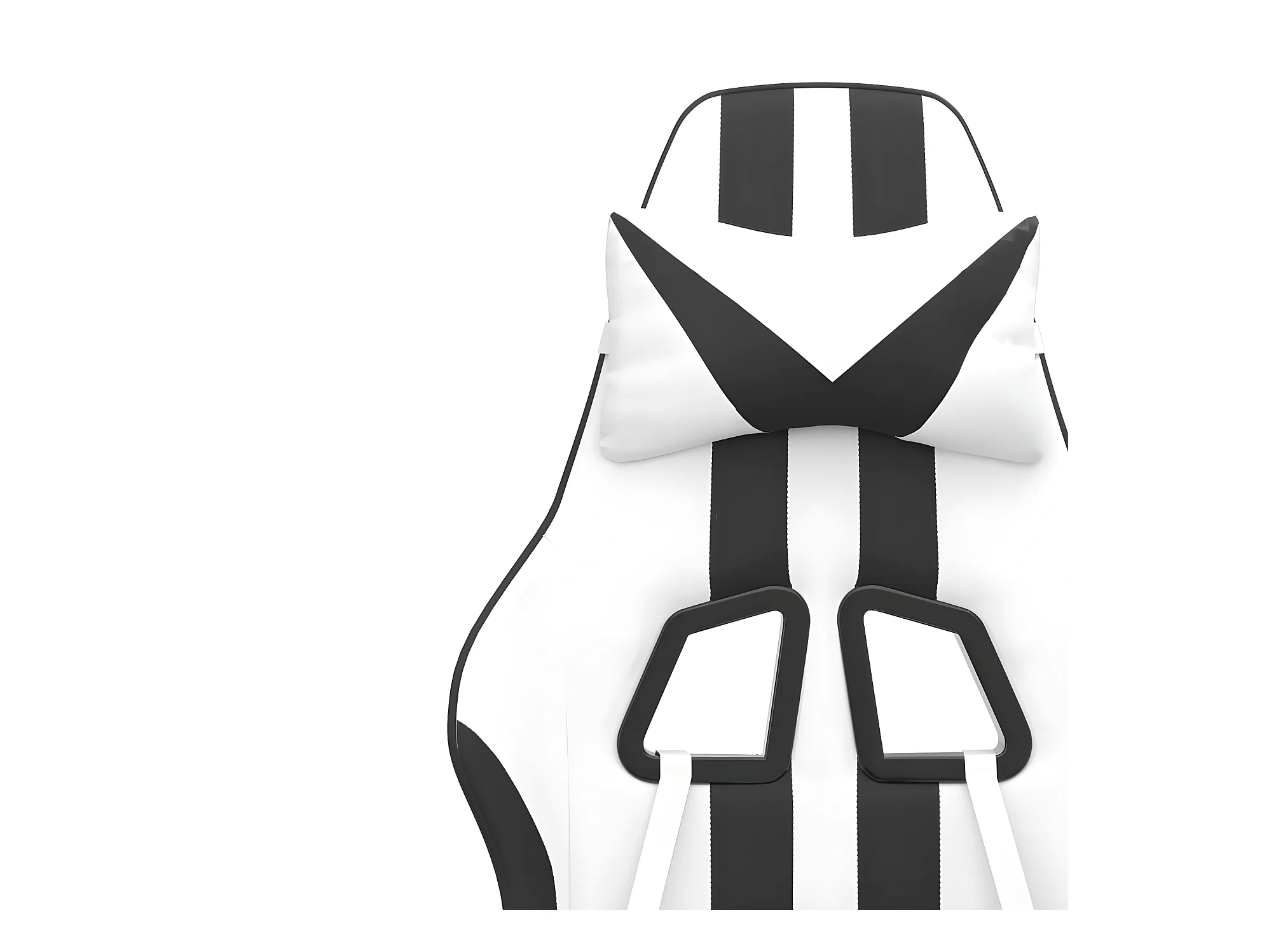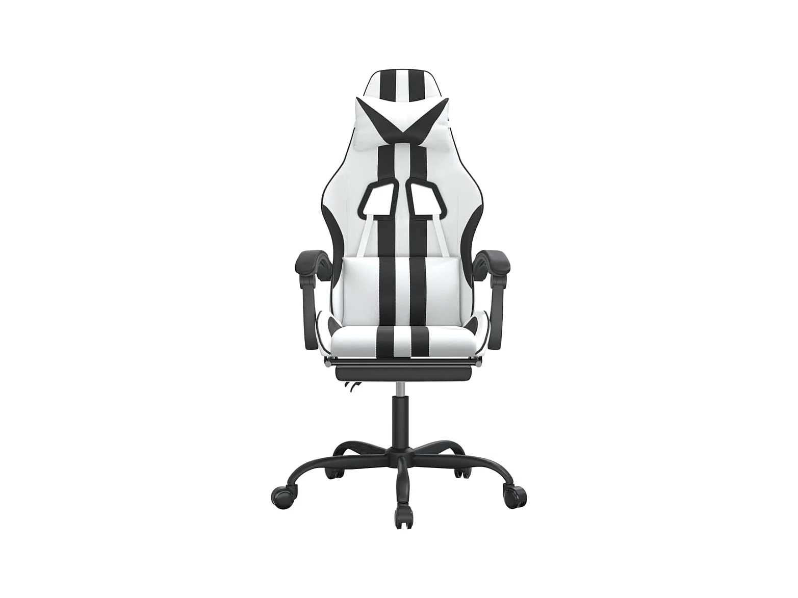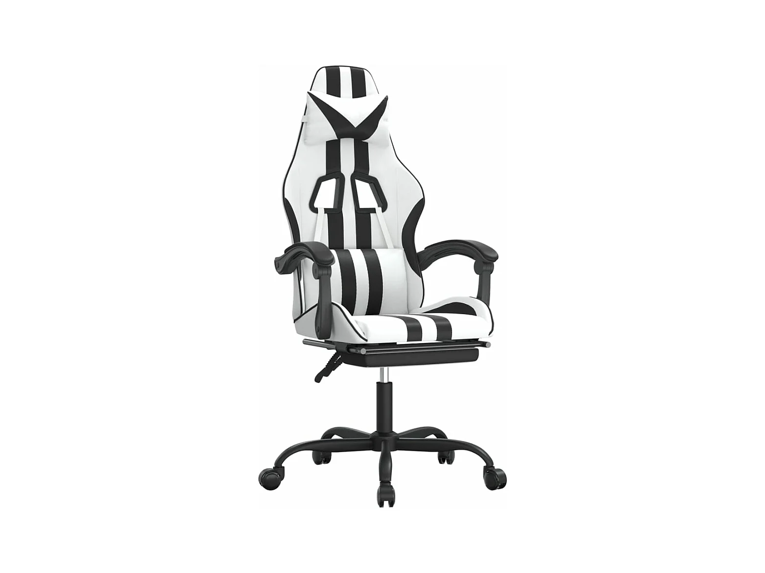 Silla gaming giratoria reposapiés cuero sintético blanco negro