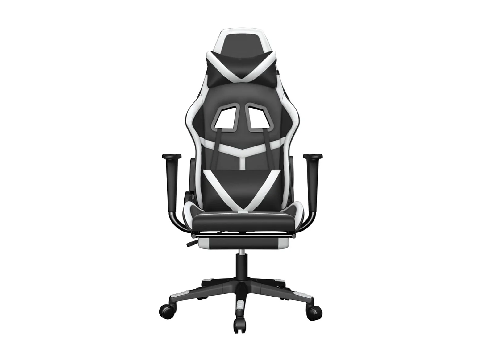 Silla gaming masaje y reposapiés cuero sintético negro blanco