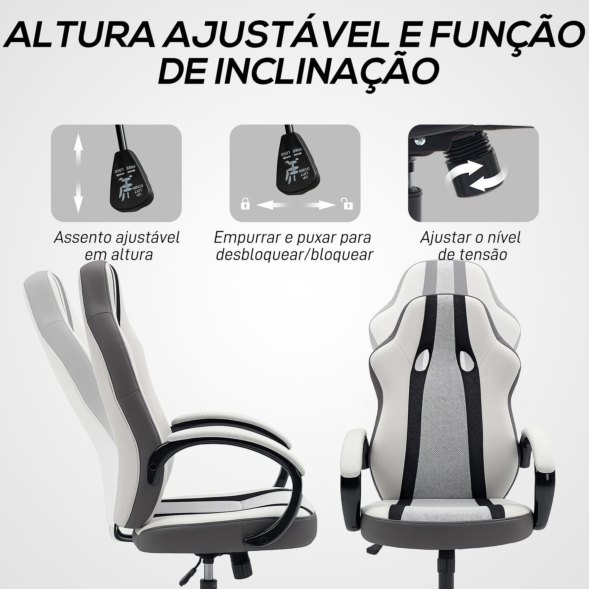 Silla gaming Trex Homcom basculante + altura ajustable gris 111-120,5x61x63 cm