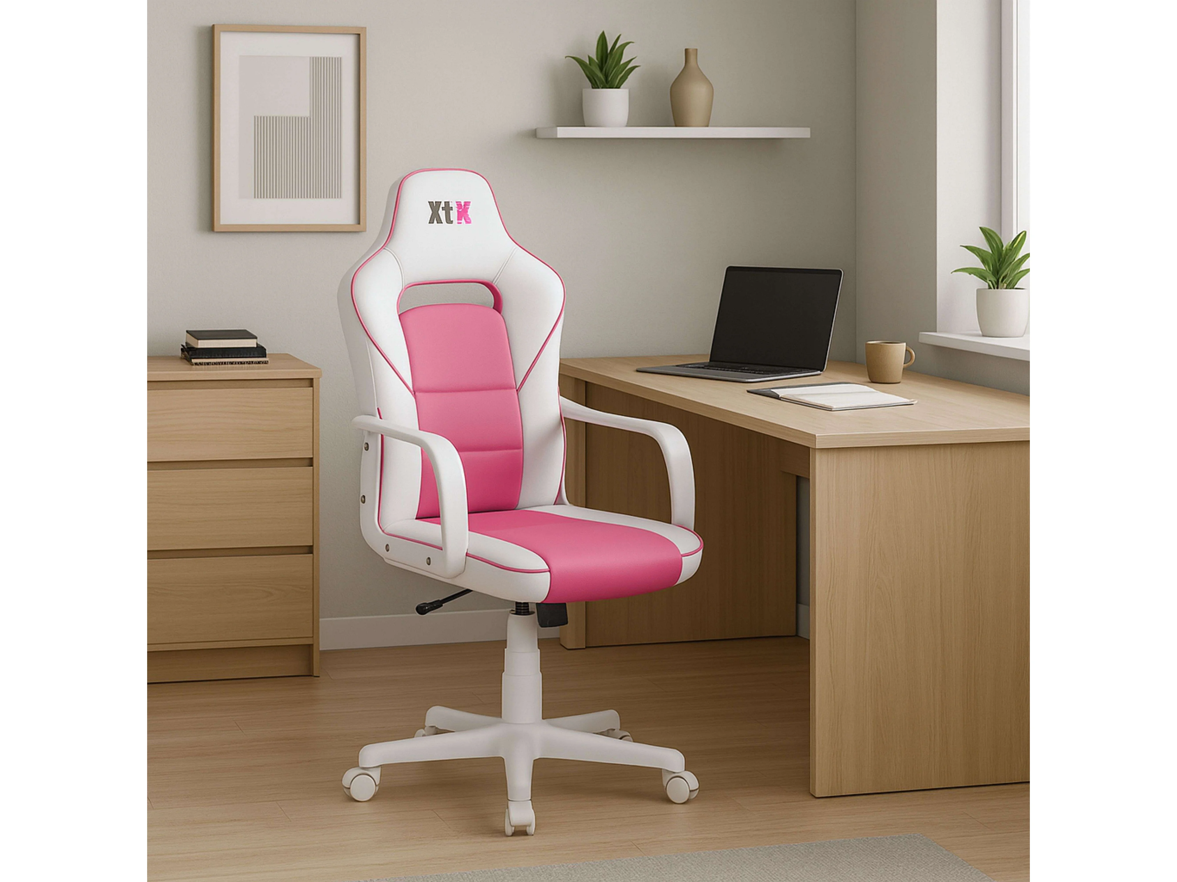 Silla gaming XTR Junior altura regulable símil piel blanco/rosa 98-108x60x60 cm Adec