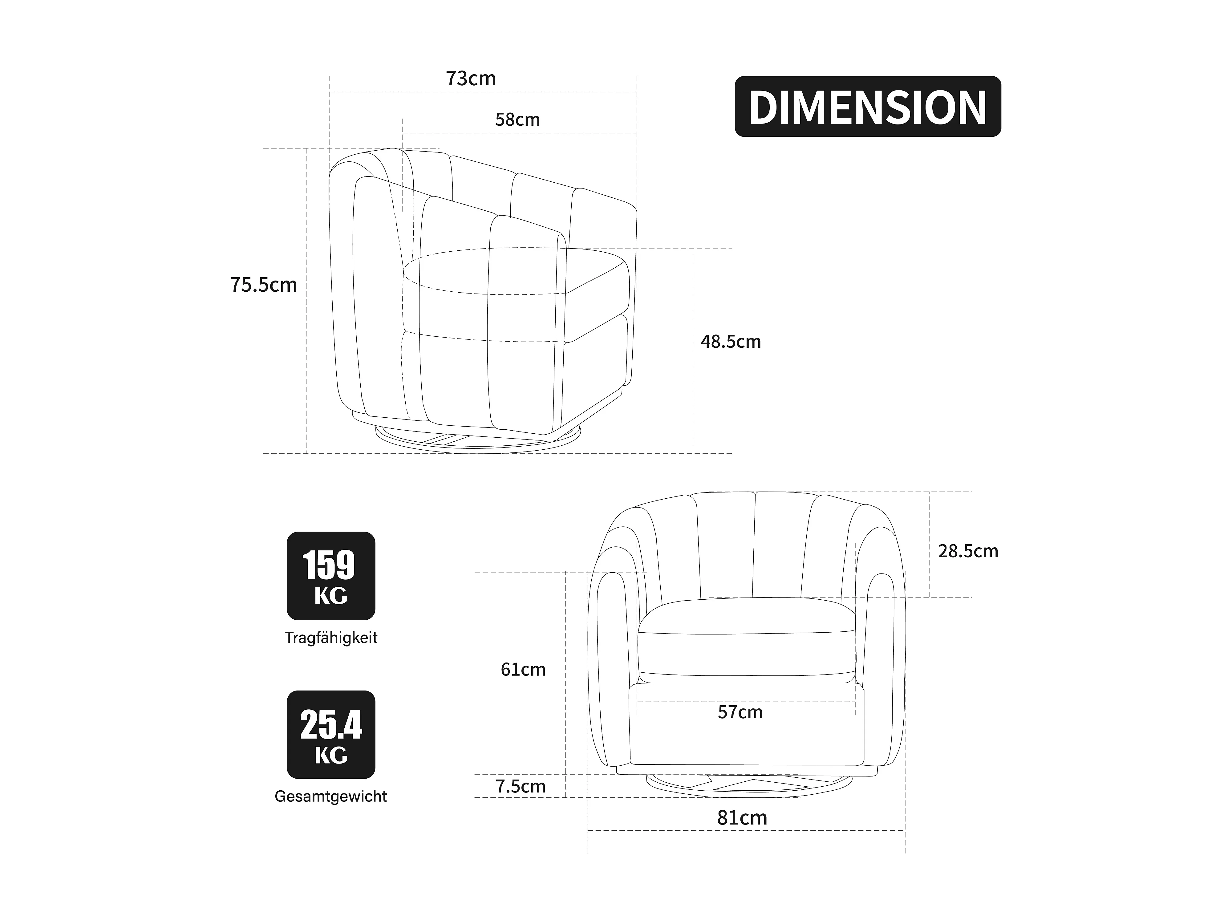 Silla giratoria de 360° en chenilla color marfil con base metálica - Forma de calabaza