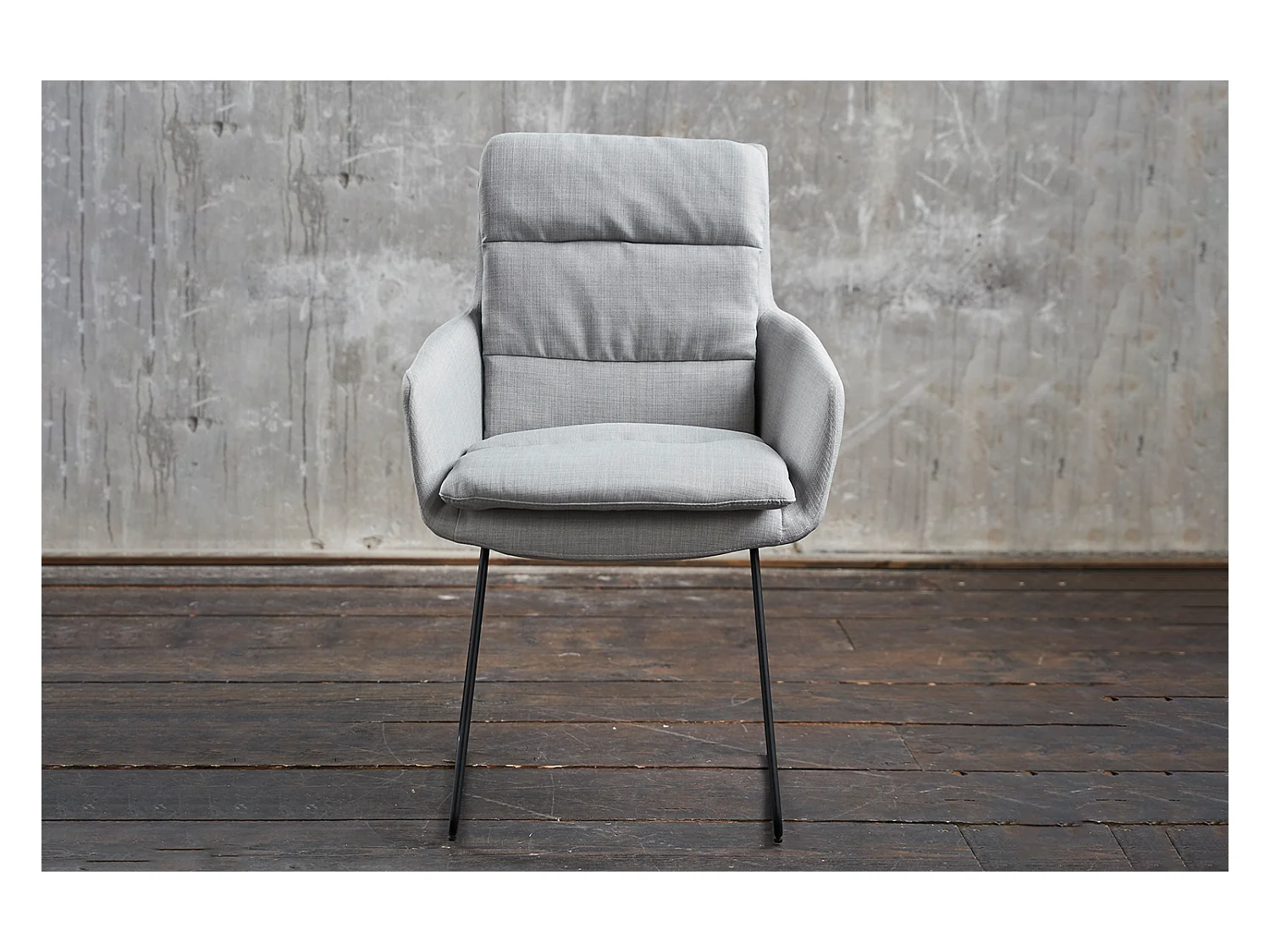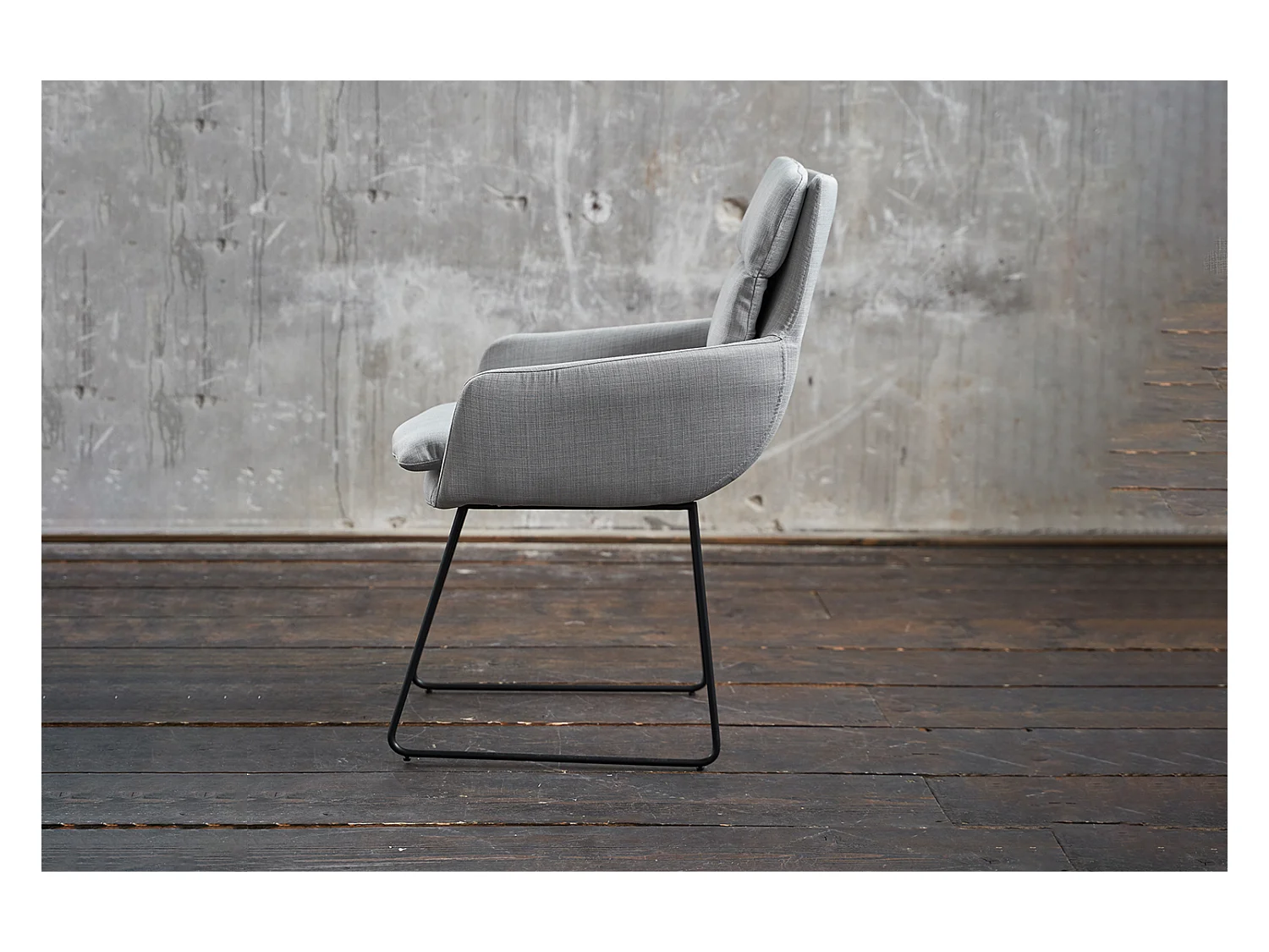Silla Kela de tela gris oscuro y patas de metal efecto madera natural