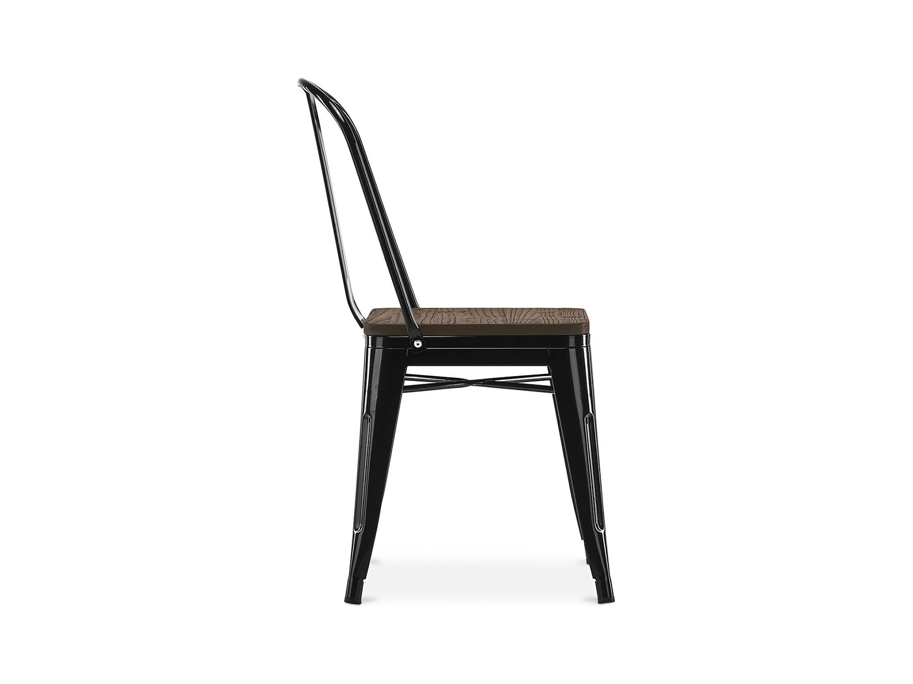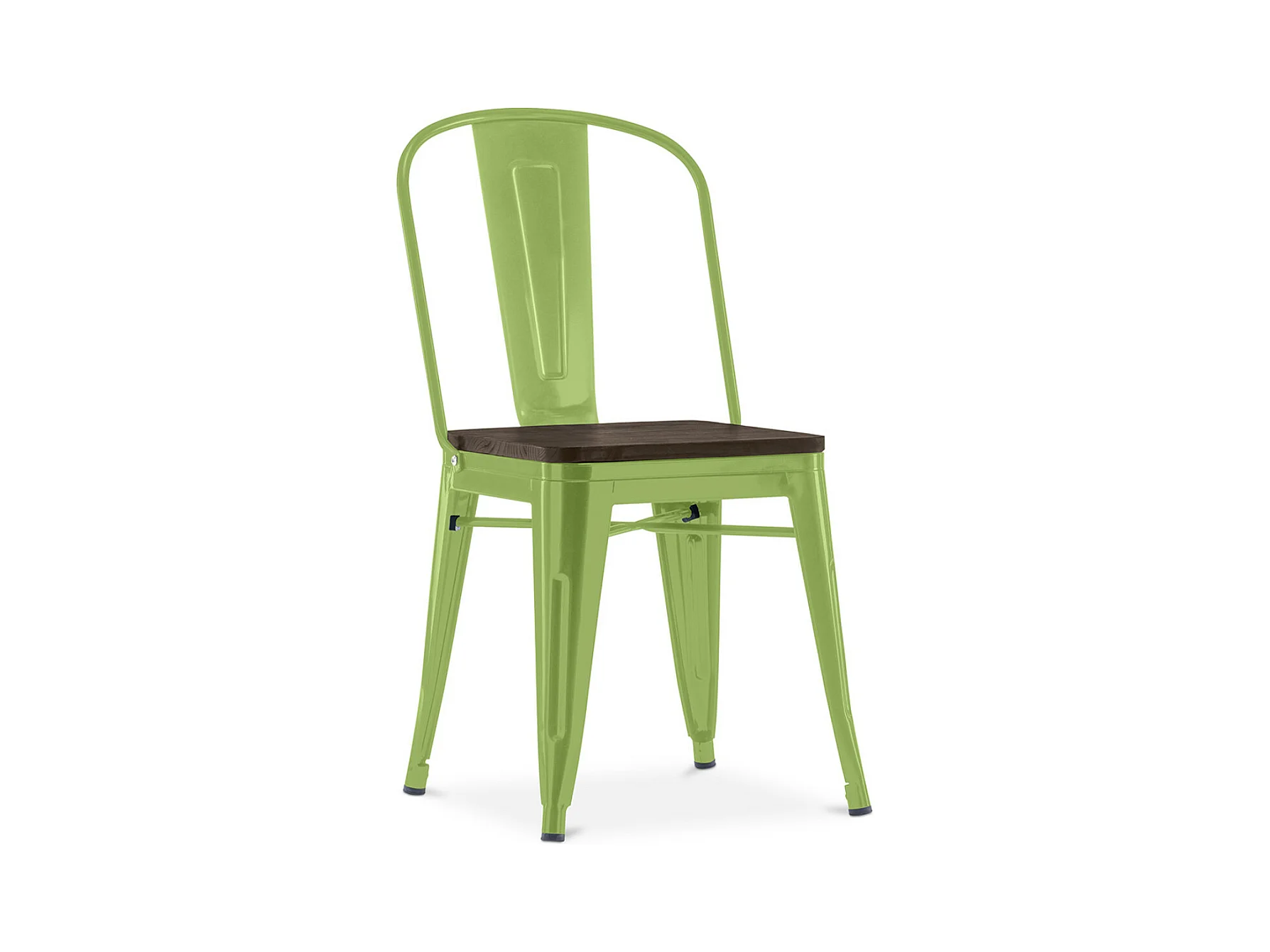Silla industrial Kontoir de acero blanco brillante con asiento de pino macizo oscuro-Color Verde pistacho