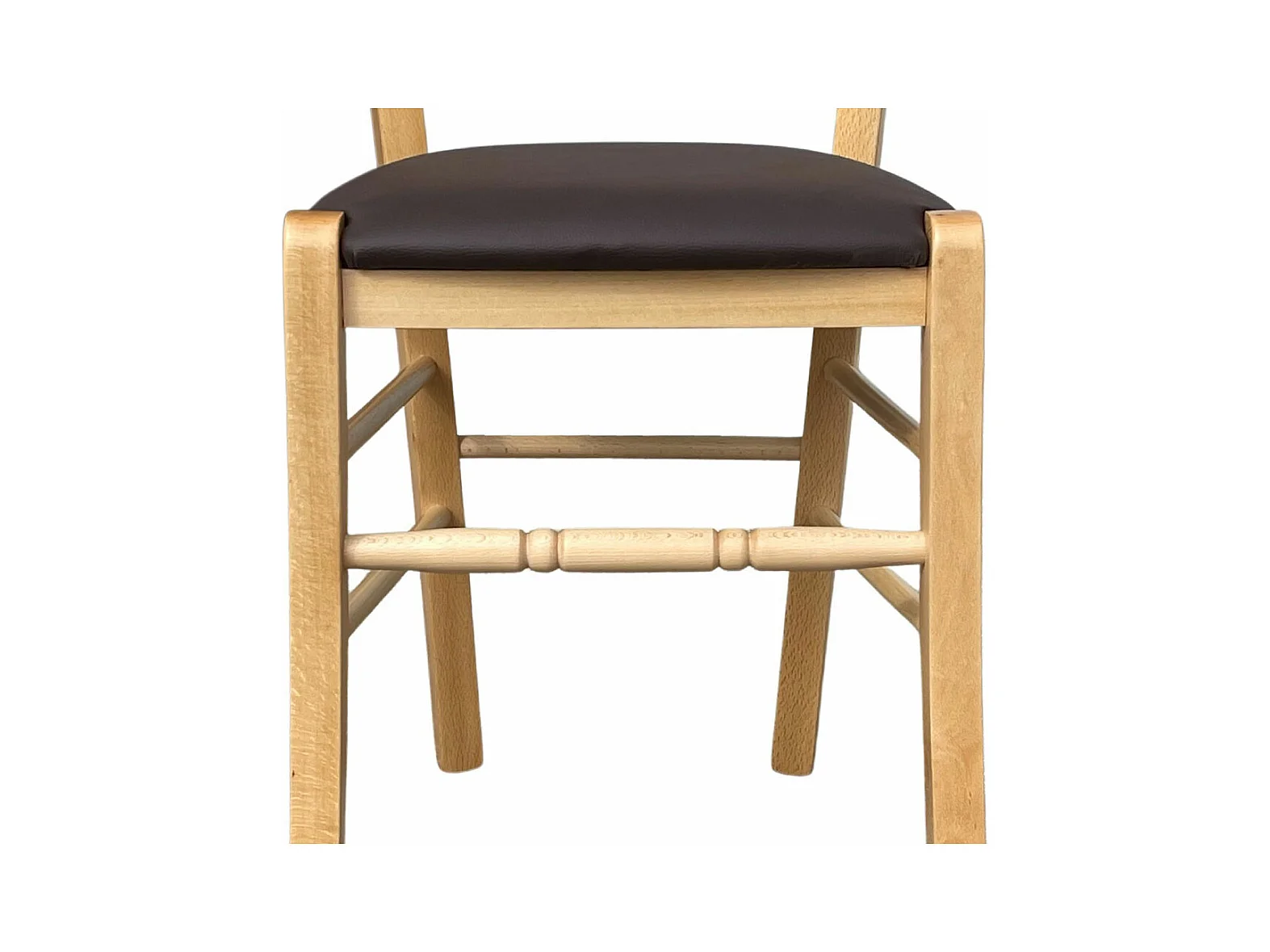 Silla loris de madera natural con asiento acolchado en polipiel marrón