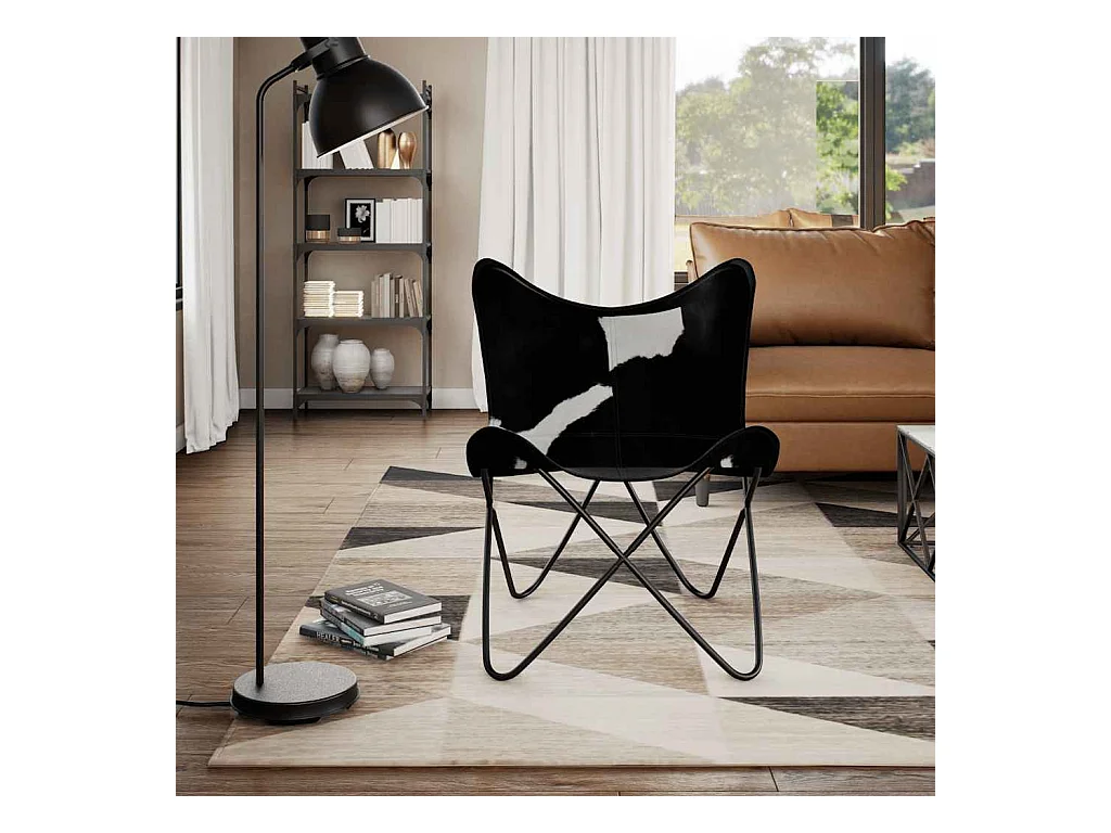 Silla mariposa de cuero auténtico negro y blanco SHL3080