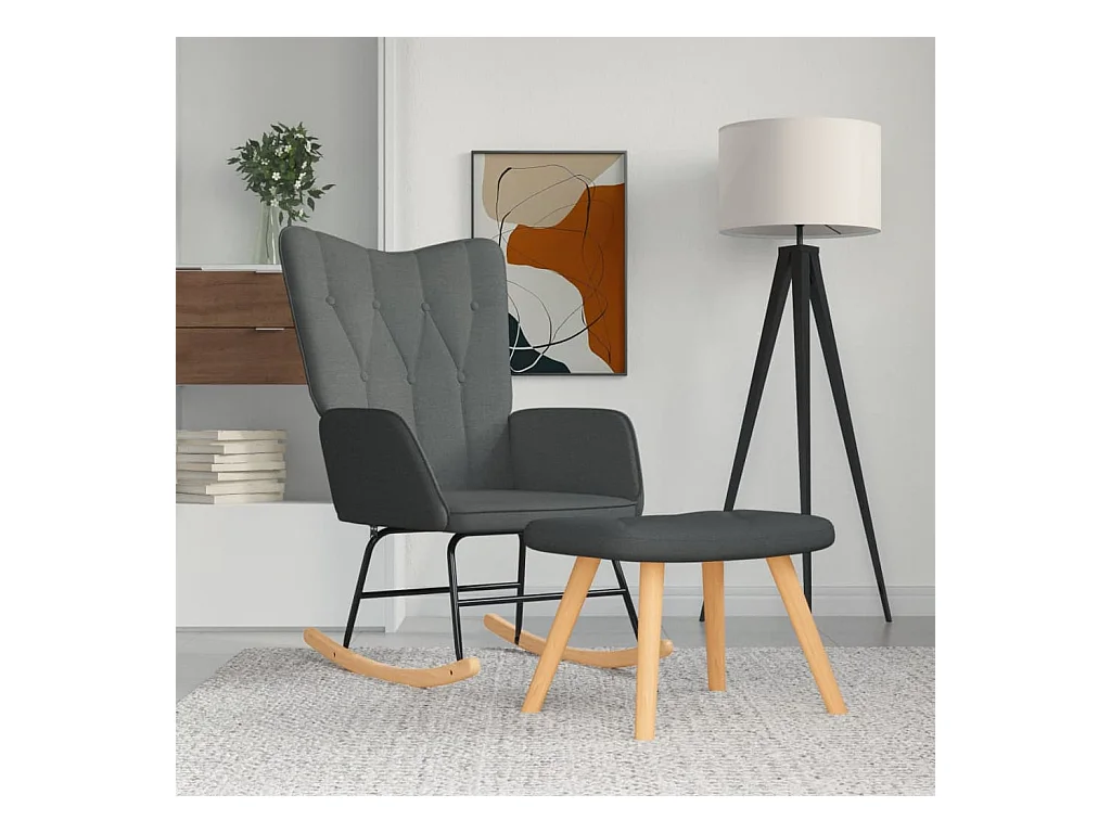 Silla mecedora con reposapiés tela gris oscuro ES273013