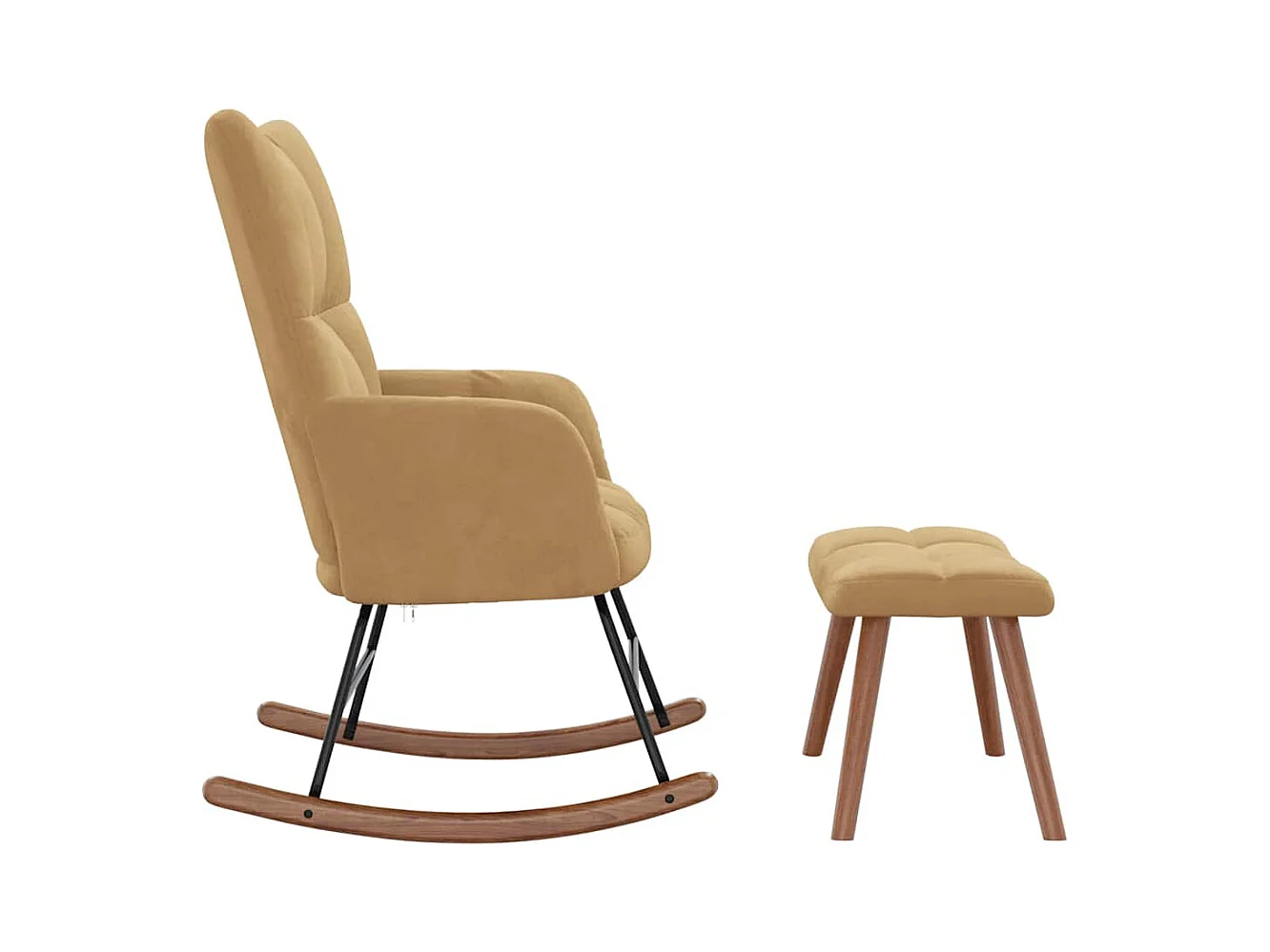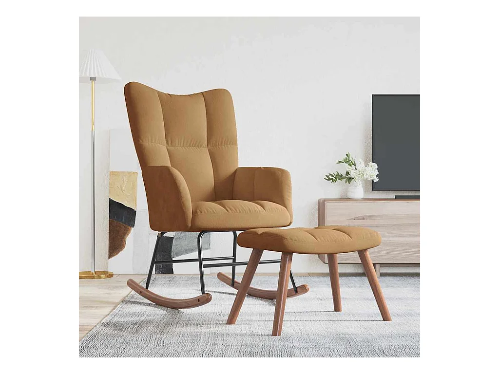Silla mecedora con reposapiés terciopelo marrón