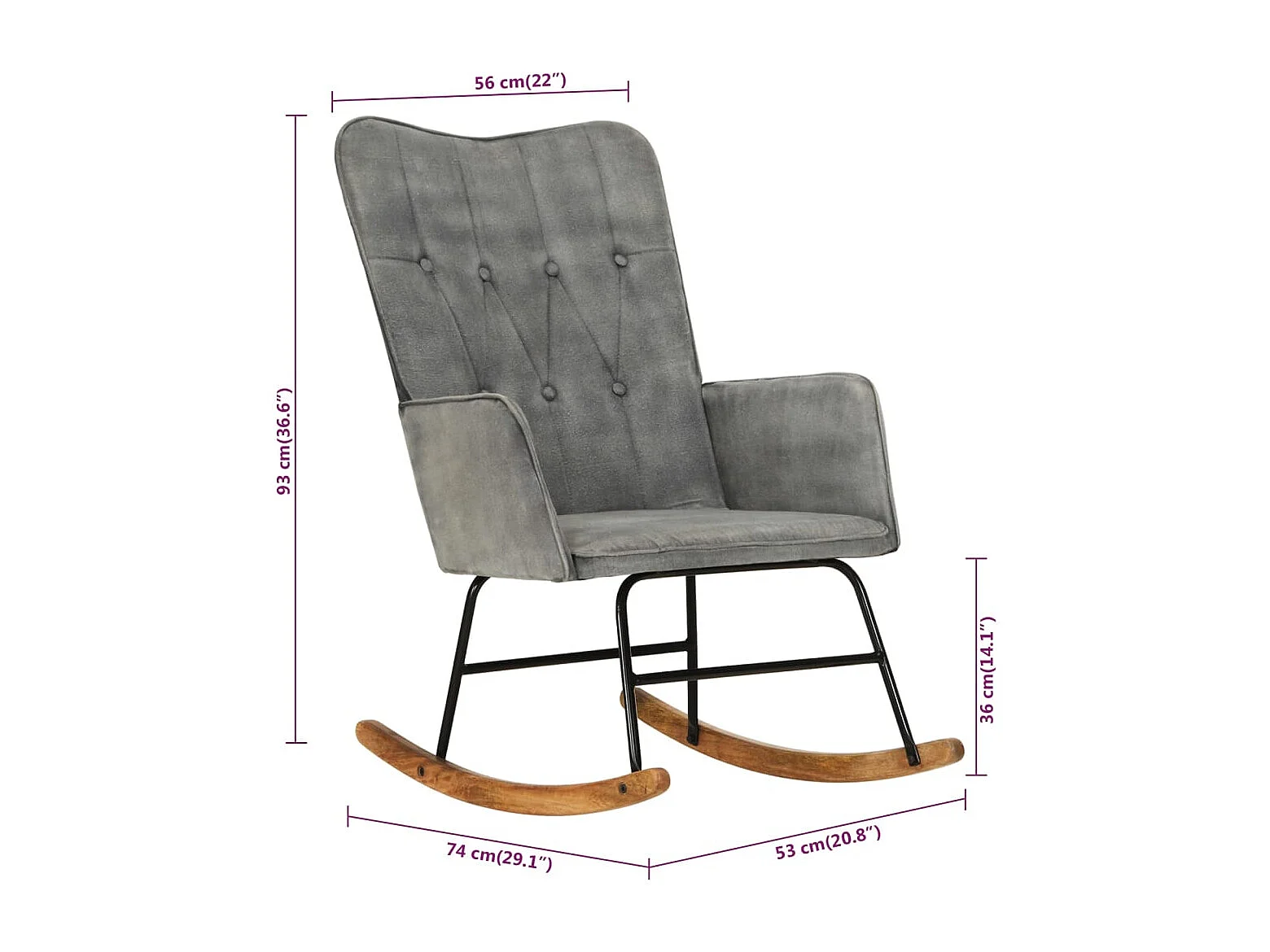 Silla mecedora de lona vintage gris