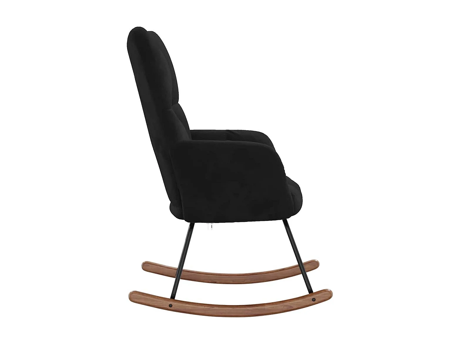Silla mecedora con reposapiés terciopelo negro ES858818