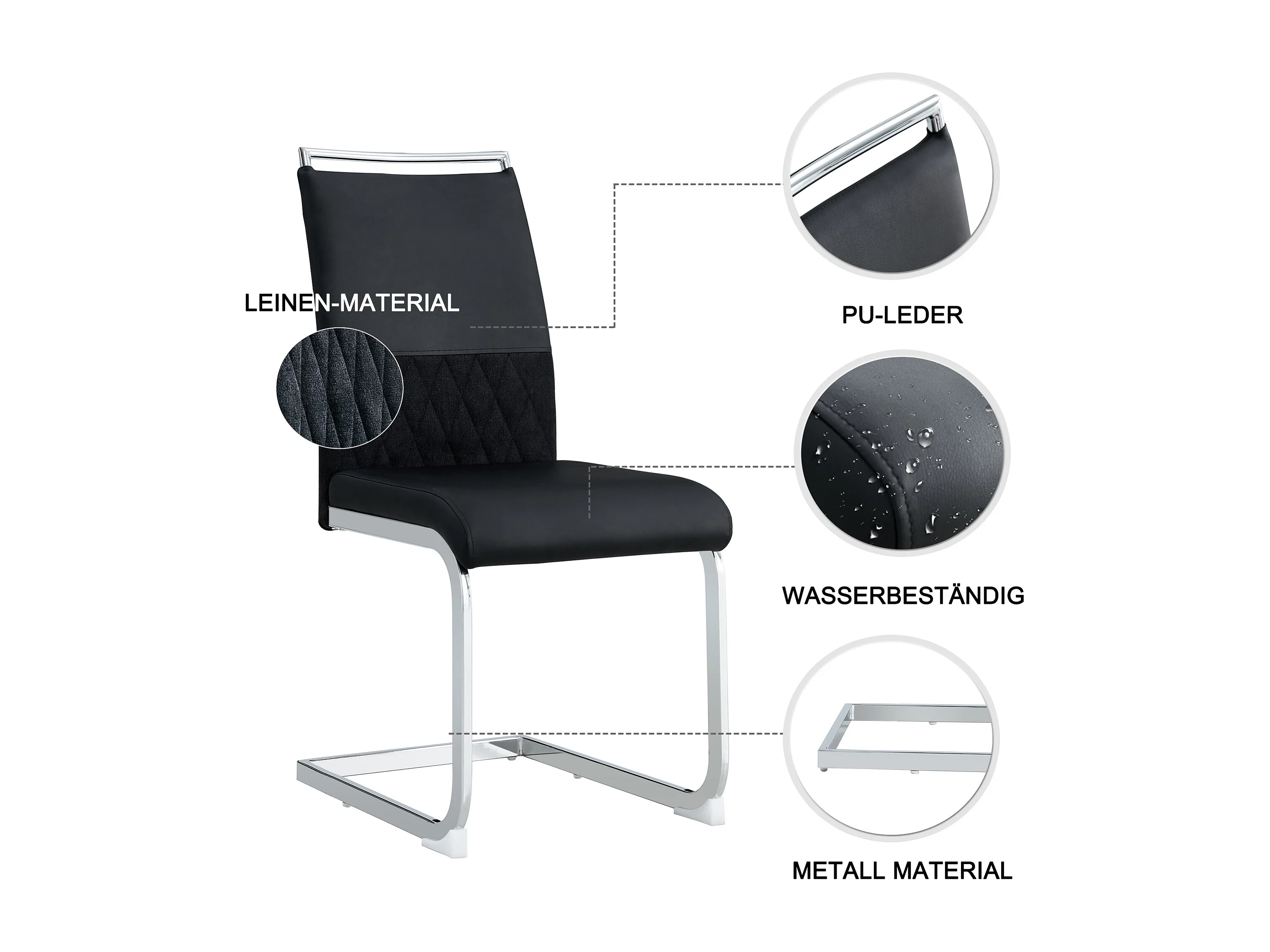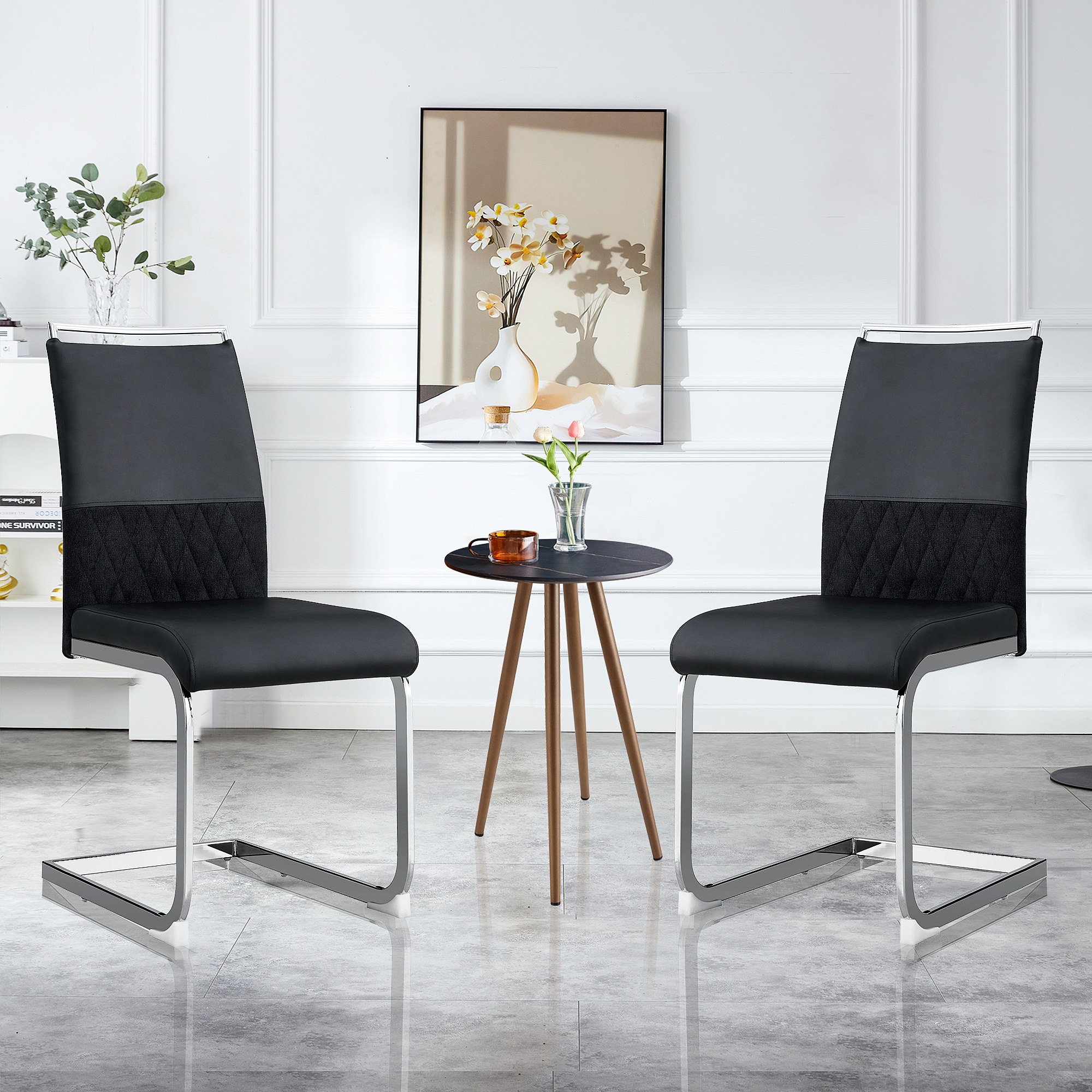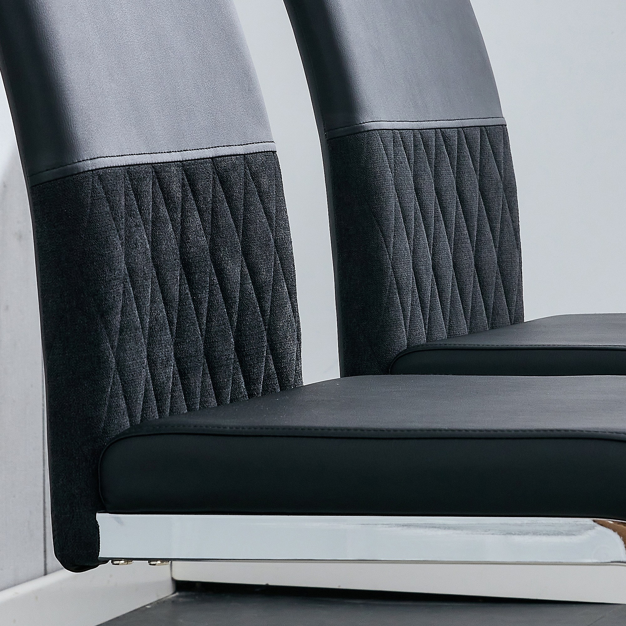 Silla moderna con respaldo alto de piel sintética y lino, asiento cómodo para comedor, cocina, color negro.