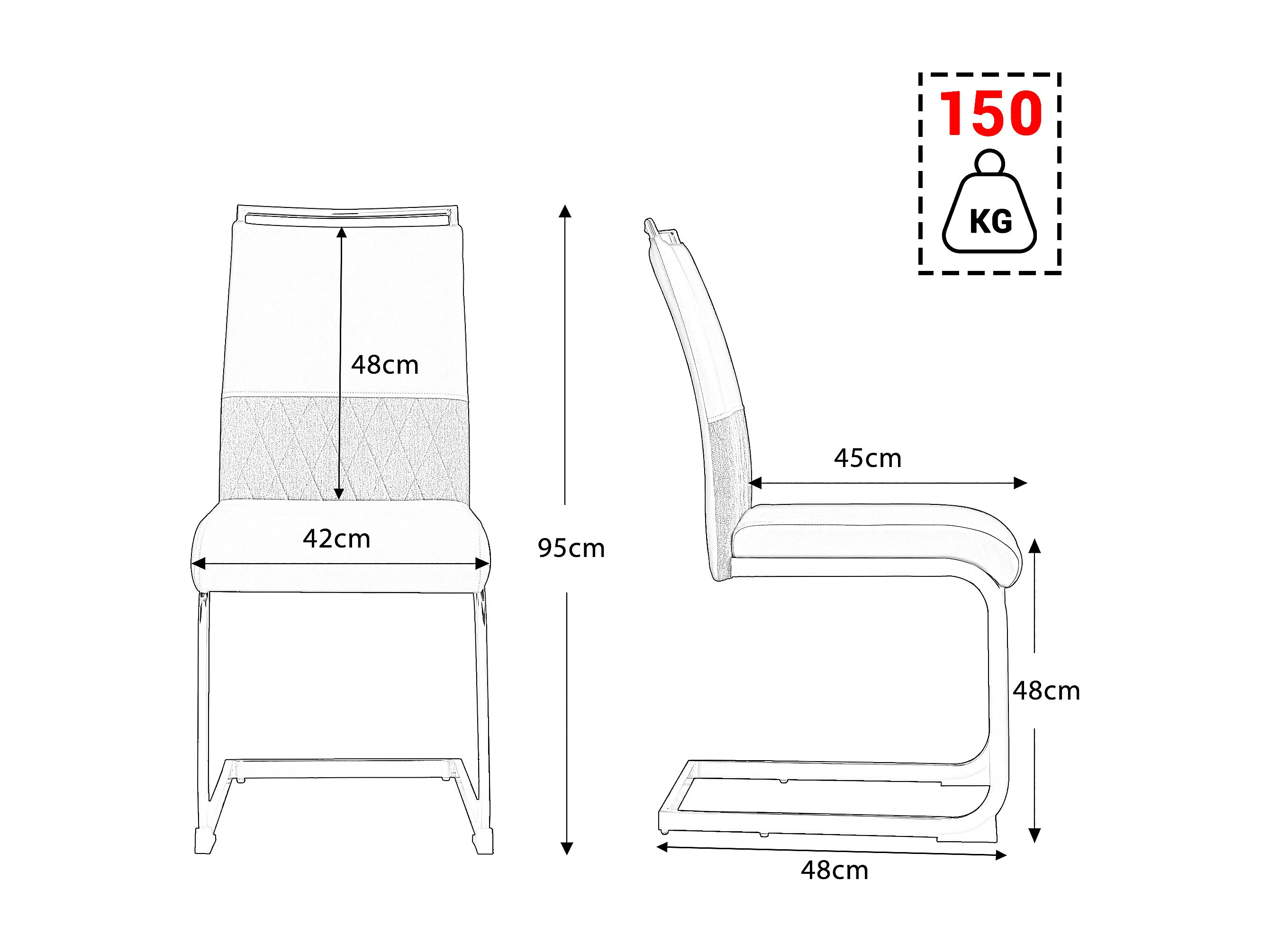 Pack de 2 sillas modelo Paloma en polipiel negro, 46 x 69 x 99/48 cm (largo x ancho x alto