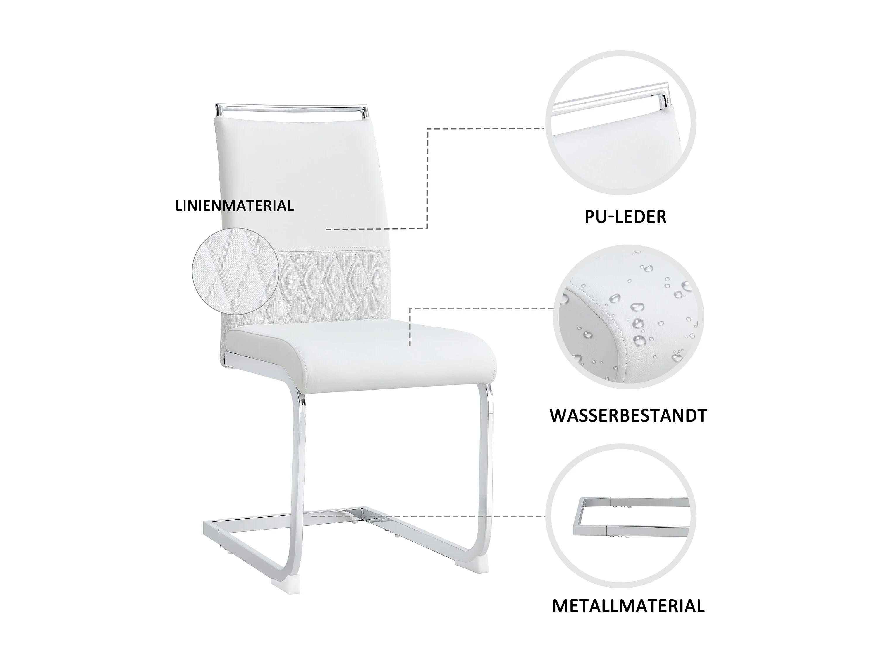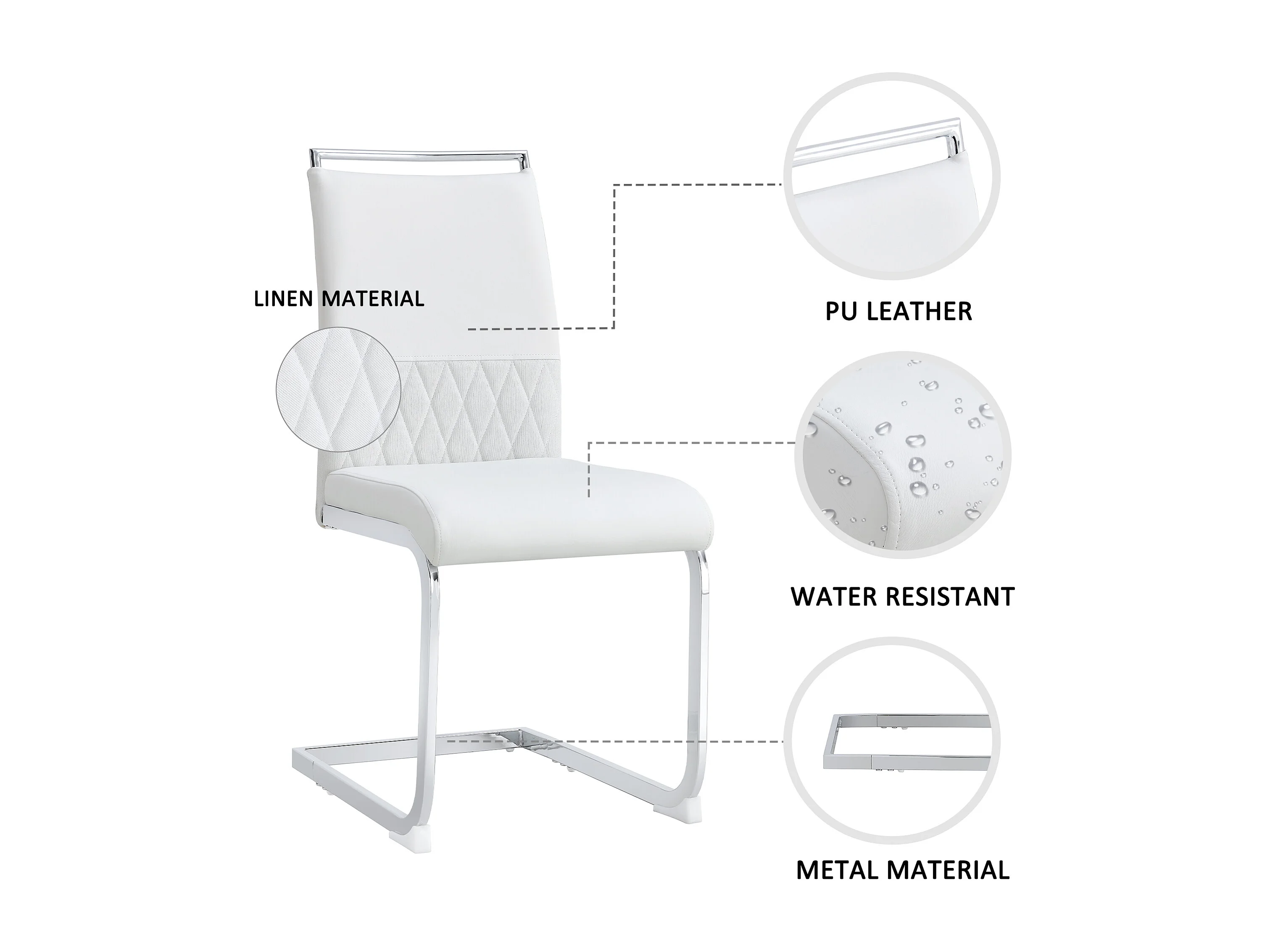 Silla moderna con respaldo alto de piel sintética y lino, asiento cómodo para comedor o cocina, color blanco, juego de 6