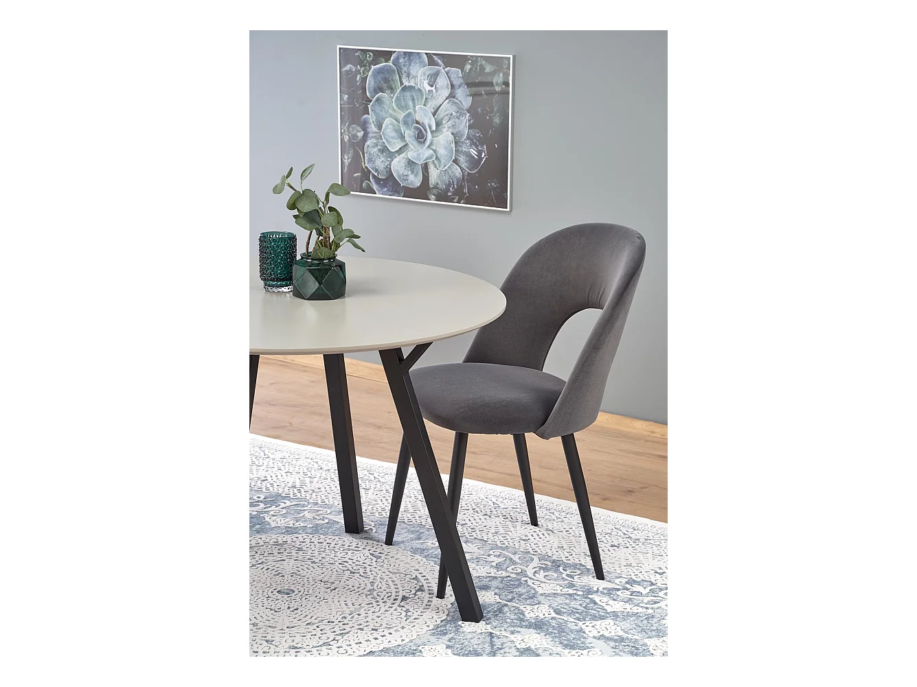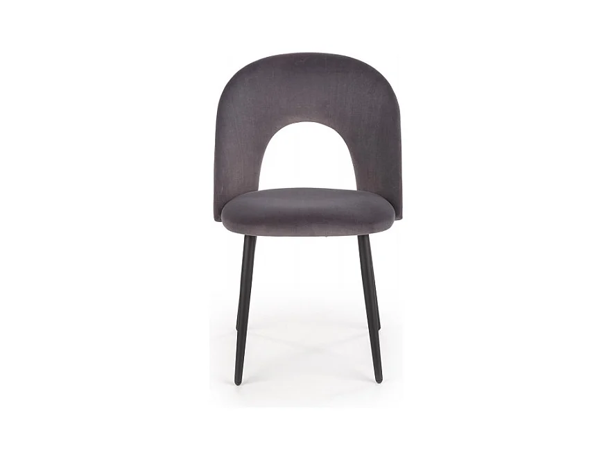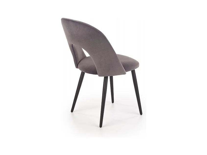 Silla de terciopelo gris con respaldo redondeado y patas de metal negro ERIKA