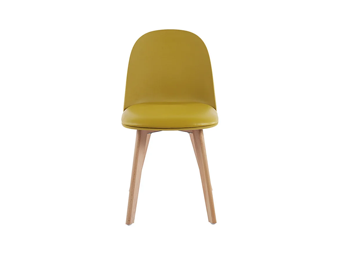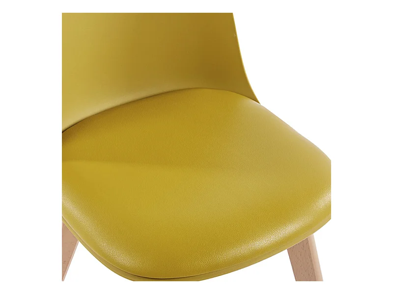 Silla Tula de estilo nórdico - Asiento de piel sintética y patas de madera clara-Color Amarillo curry