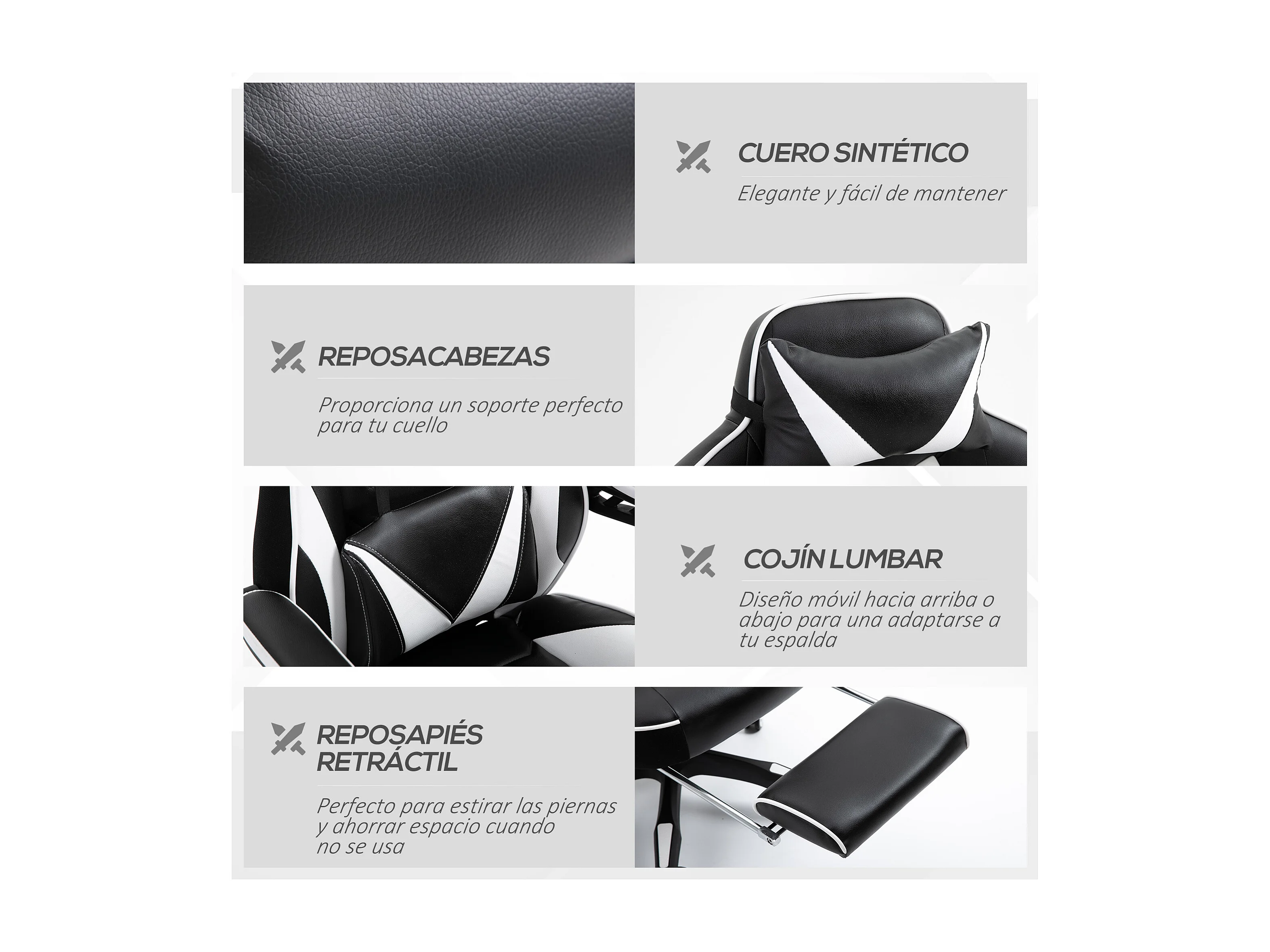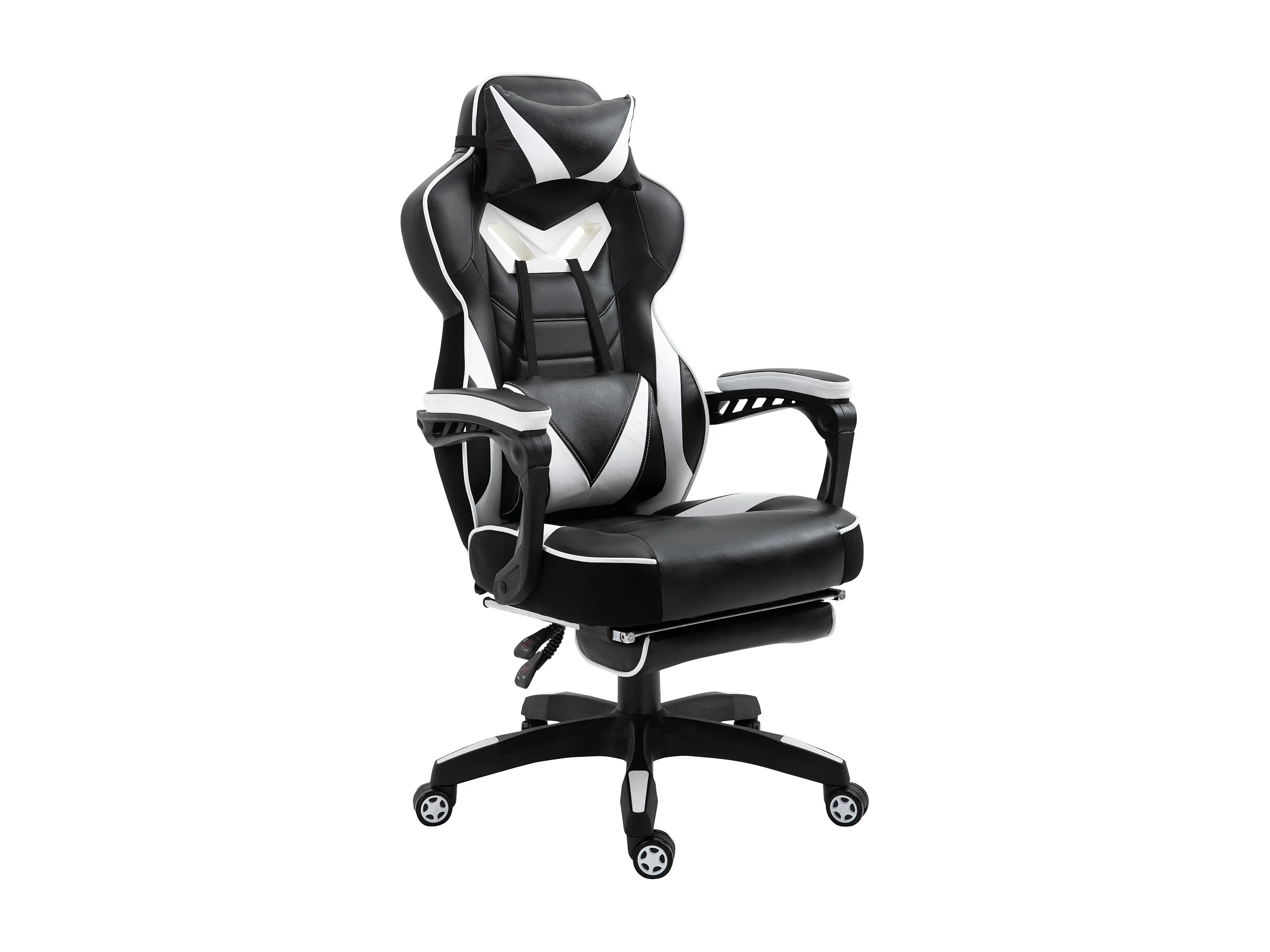 Silla gaming con luces LED RGB cuero sintético blanco y negro