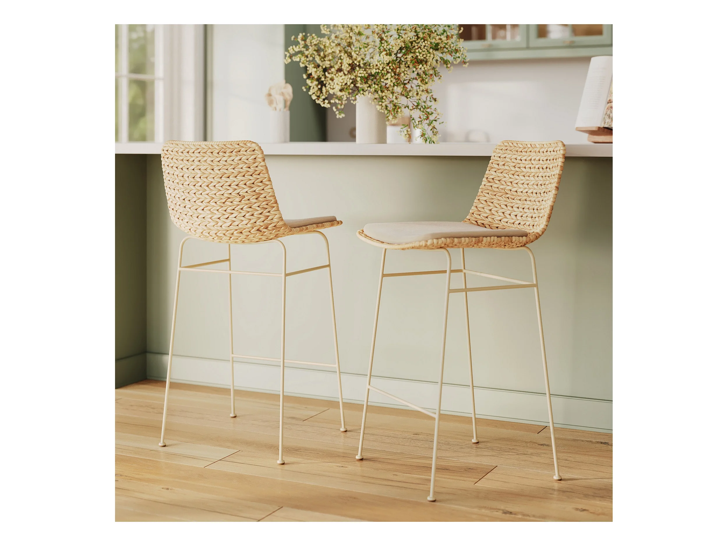 Set de 2 sillas para isla de cocina en mimbre natural 66 cm - Tamara