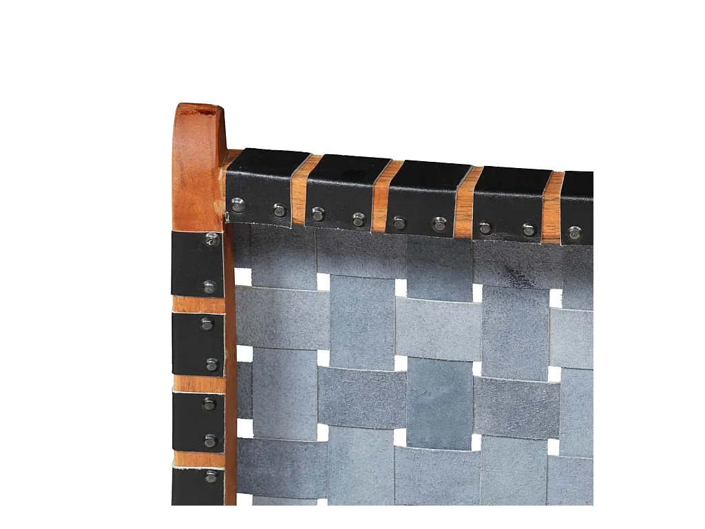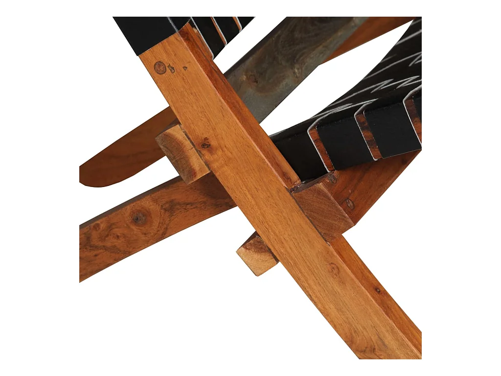 Silla plegable con bandas cruzadas de cuero genuino negro.