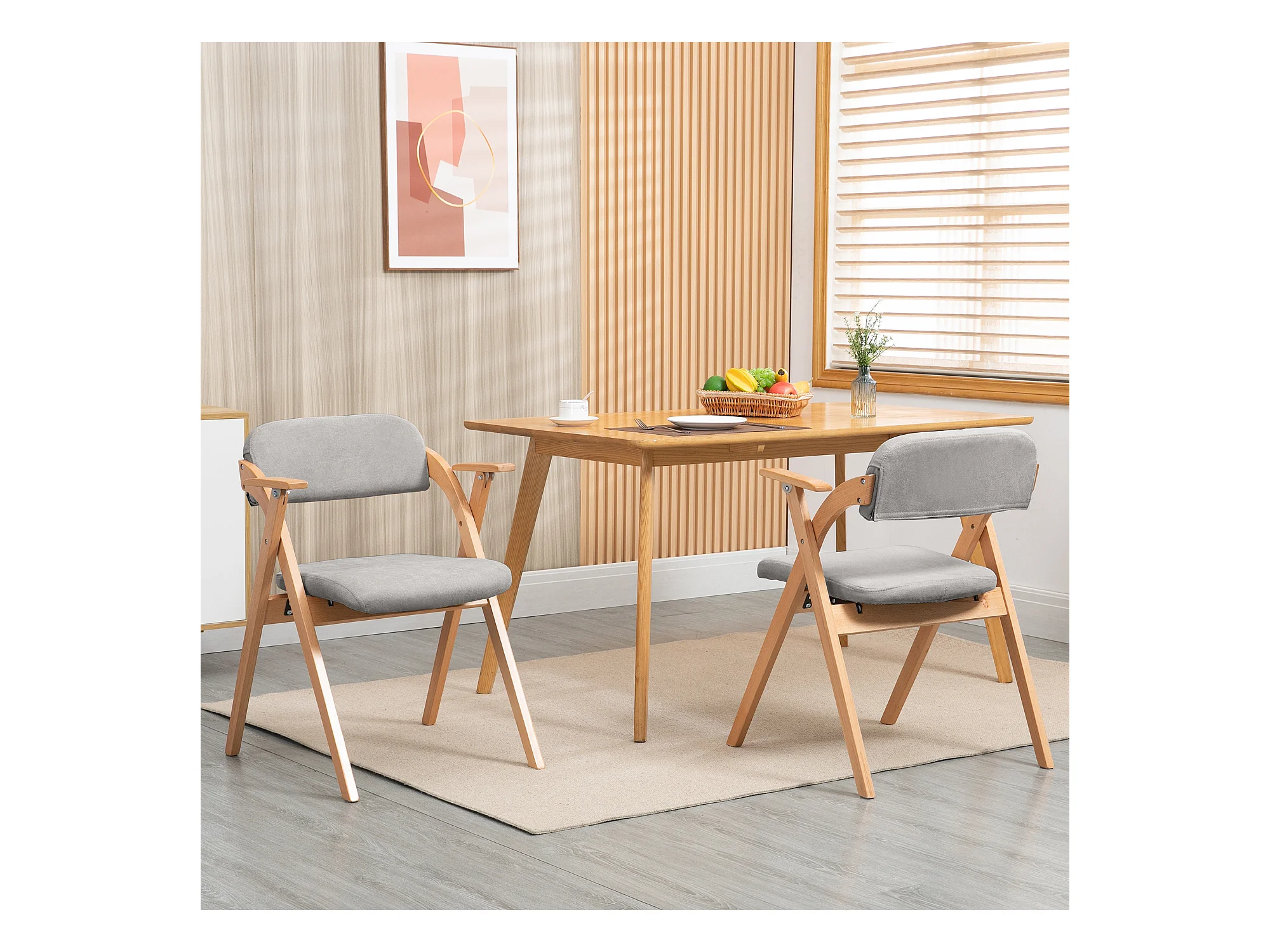 Silla plegable de madera maciza con reposabrazos y cojines juego de 2 para comedor cocina gris
