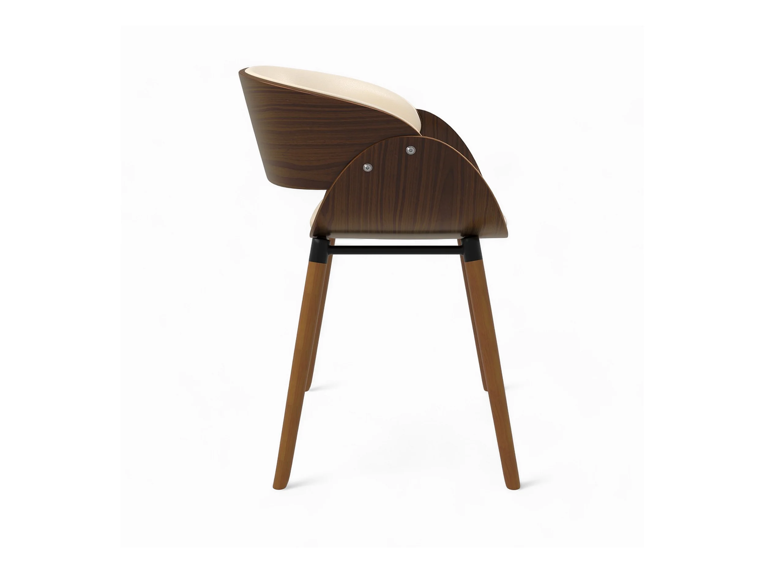 Silla Polo beige de cuero sintético y madera chapada en nogal