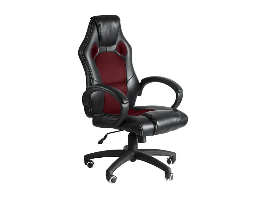 Silla gaming giratoria y reposapiés cuero sintético negro rojo