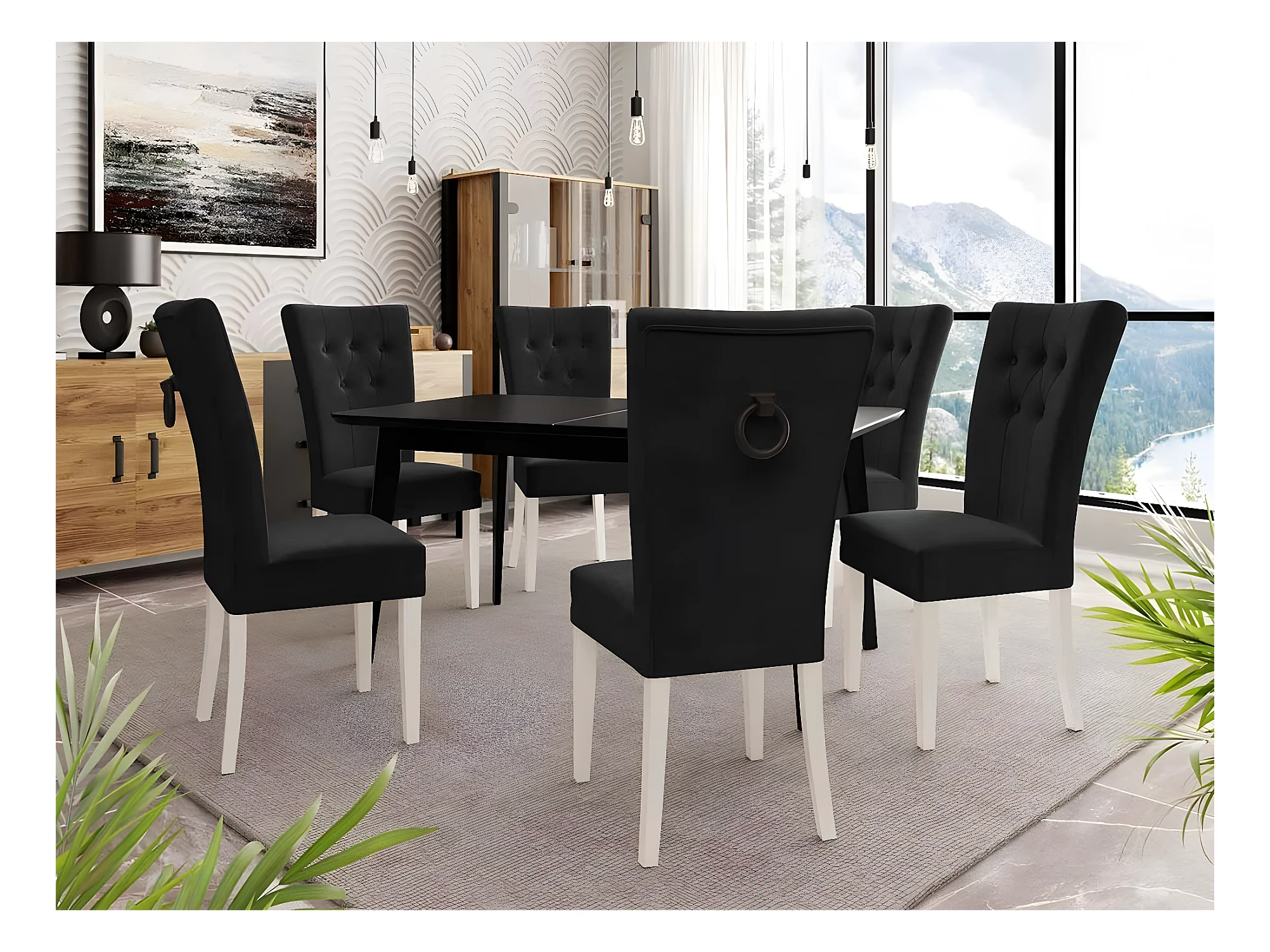Mesa de comedor extensible 4 a 8 comensales de MDF y acero - Natural y negro - KOMONI