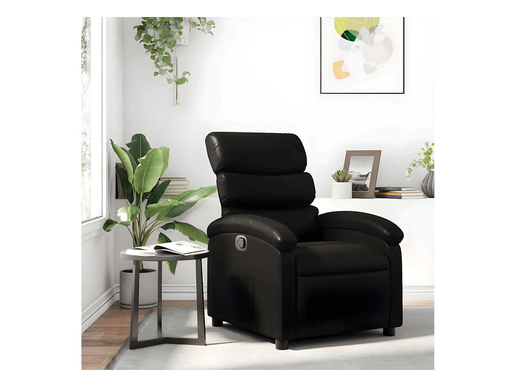 Silla reclinable de piel sintética negra