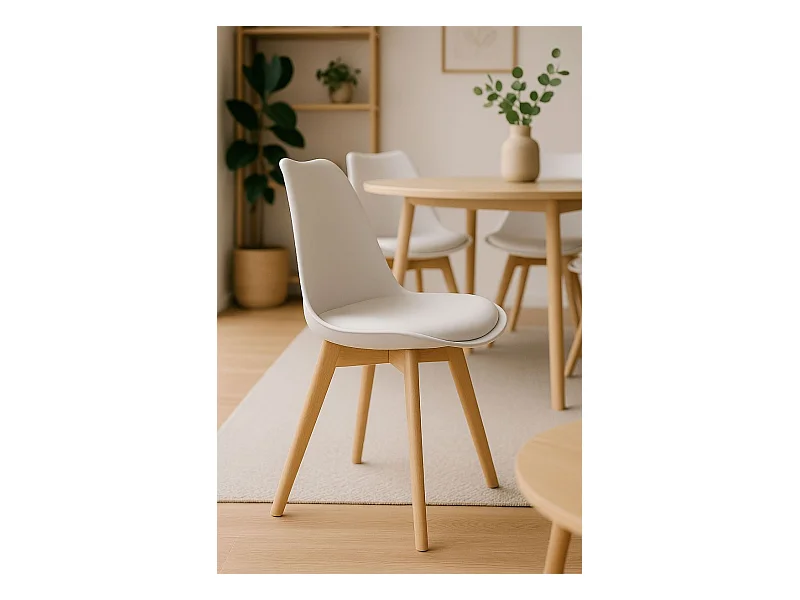 Silla escandinava Kany - Confort en símil piel y patas de madera natural-Color Blanco