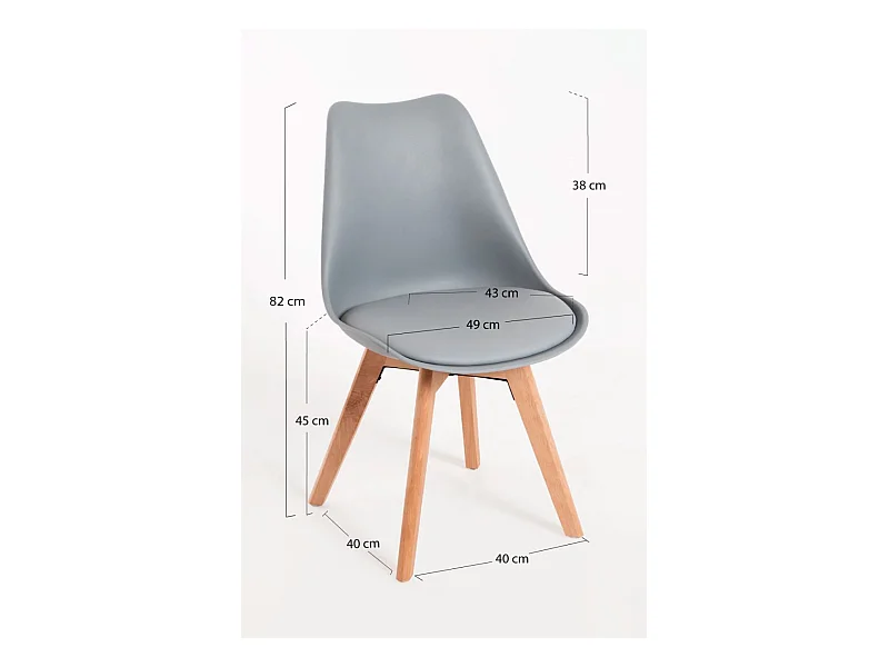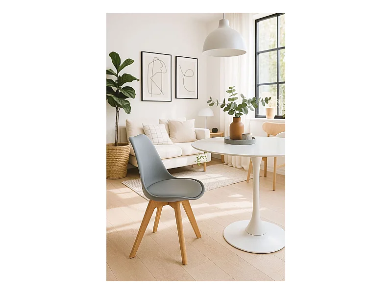 Silla escandinava Kany - Confort en símil piel y patas de madera natural-Color Gris