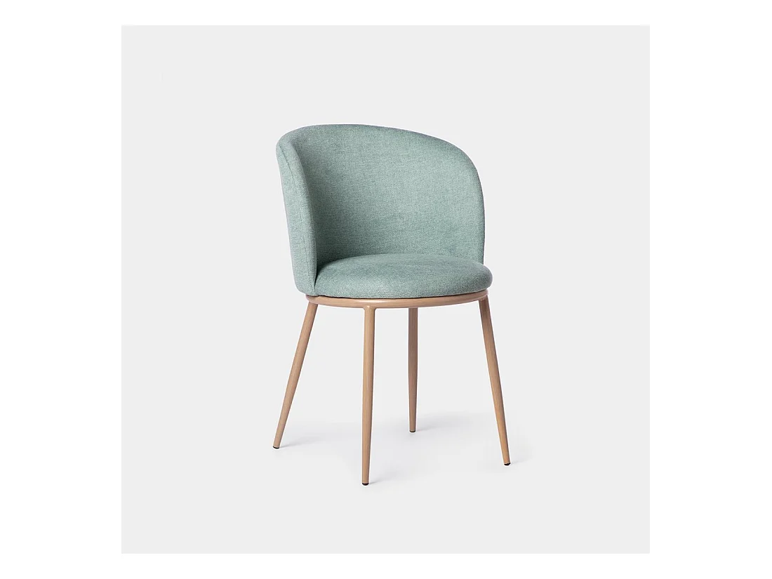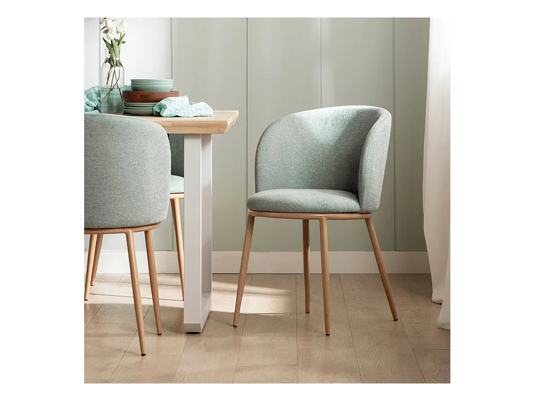 Lote de 4 sillas en tela verde con patas de metal efecto madera – Dimensiones 45x87x54 cm, altura del asiento 49 cm – NORDICA