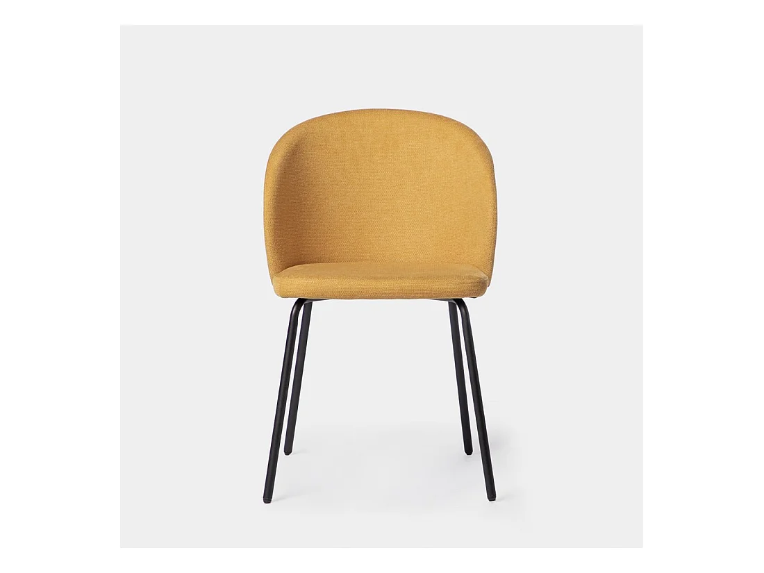 Lote de 4 sillas en tela amarillo mostaza con patas de metal efecto madera – 45x87x54 cm – Colección NORDICA