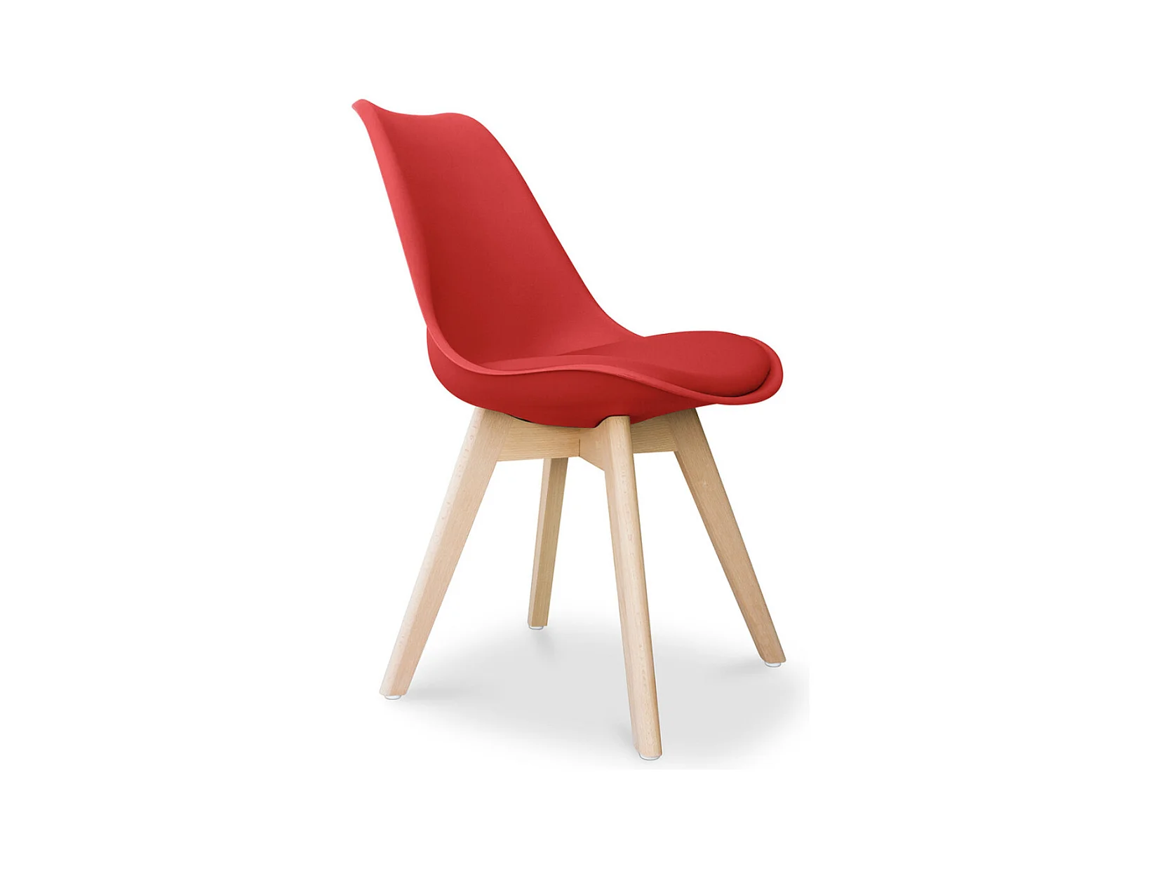 Silla Tula de estilo nórdico - Asiento de piel sintética y patas de madera clara-Color Rojo