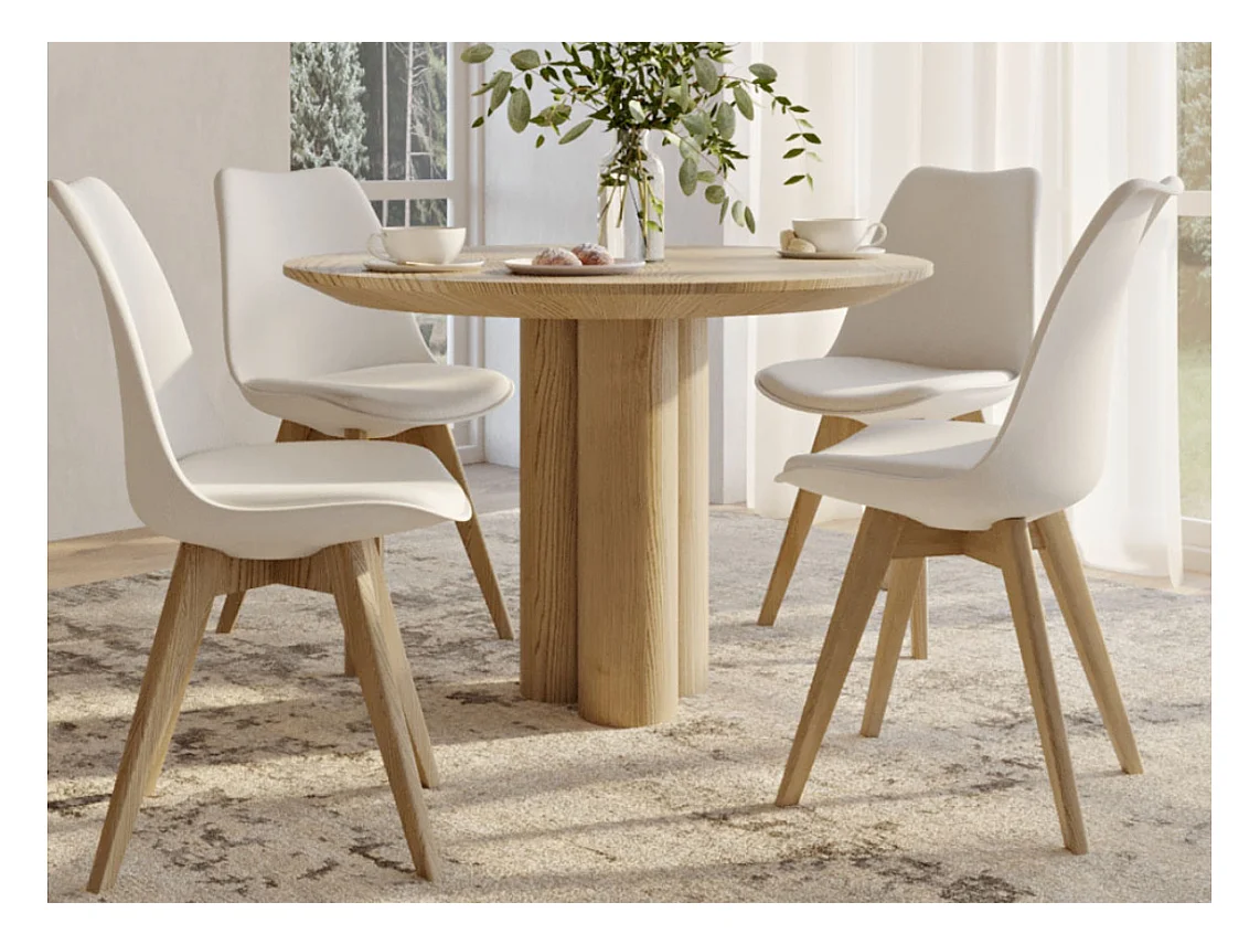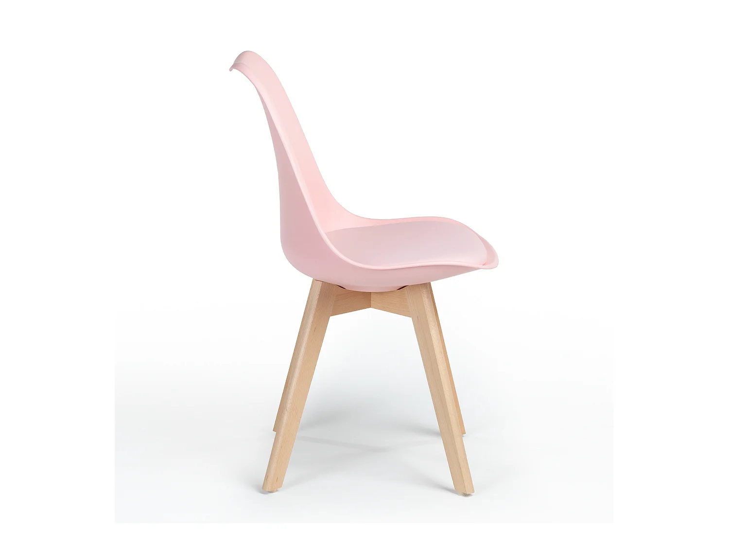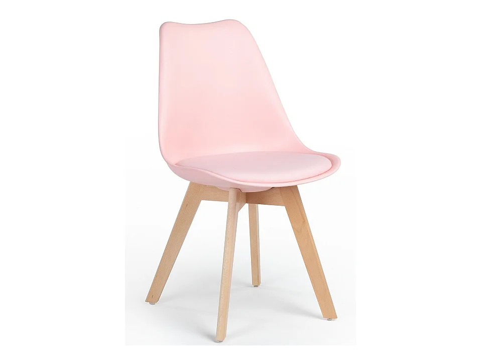 Silla Tula de estilo nórdico - Asiento de piel sintética y patas de madera clara-Color Rosa claro