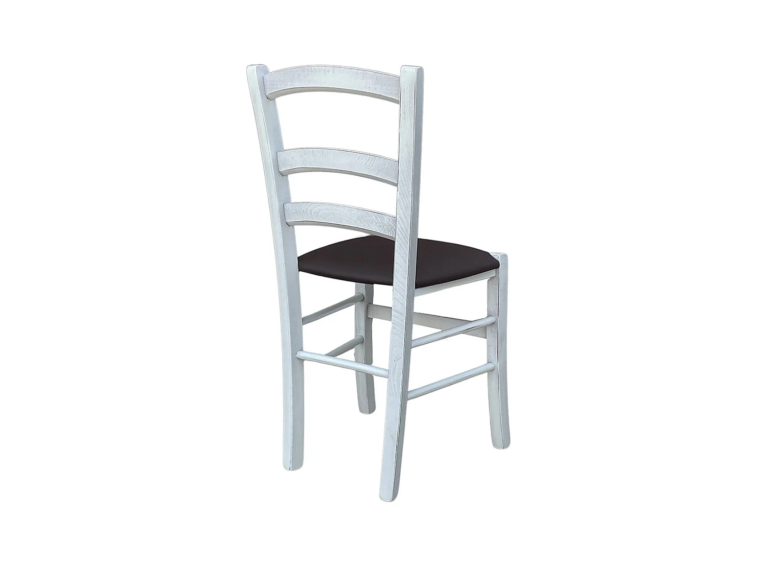 Silla Venezia paesana de madera blanca con asiento de símil piel antracita